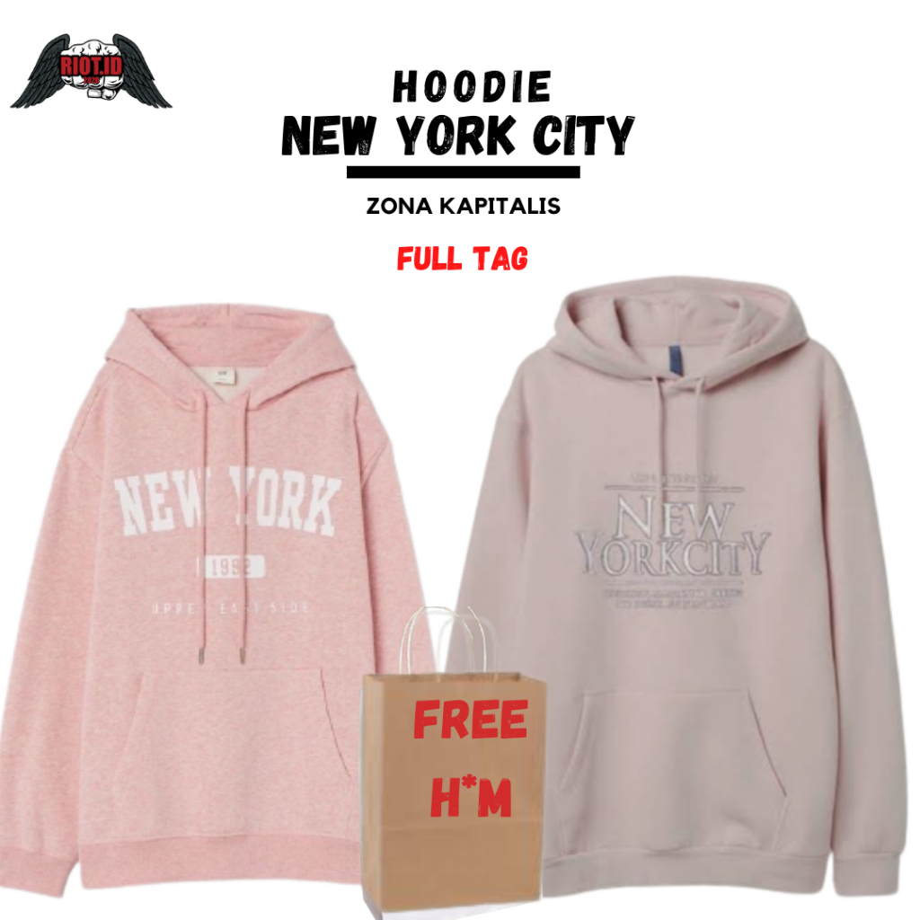 Hoodie HM New York City Pink Full Tag Jacket Sweater Crewneck Pria Wanita Perempuan Laki Cowo Cewe Unisex