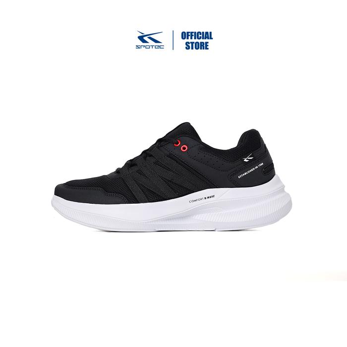 [Star]Spotec Running Modern Sepatu Lari Pria Wanita - Hitam Putih - Hitam/Hitam, 45