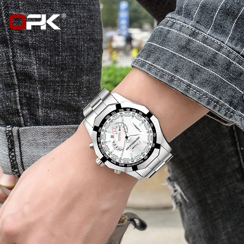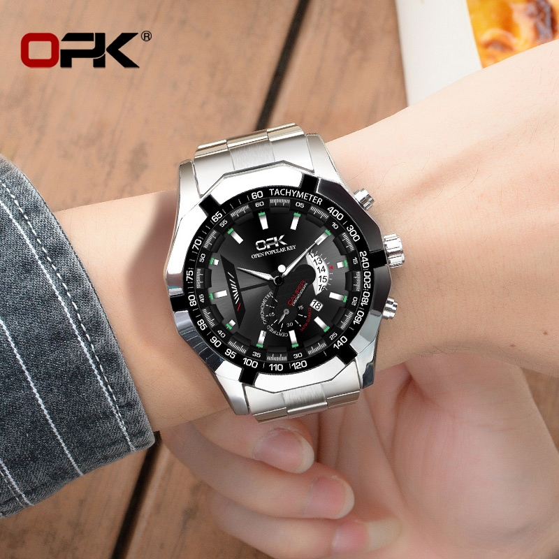 OPK Jam Tangan Pria Anti Air Original Rantai Analog Chain Stainless Tahan Bisnis Kuarsa New Arrivel With Box Hitam Model