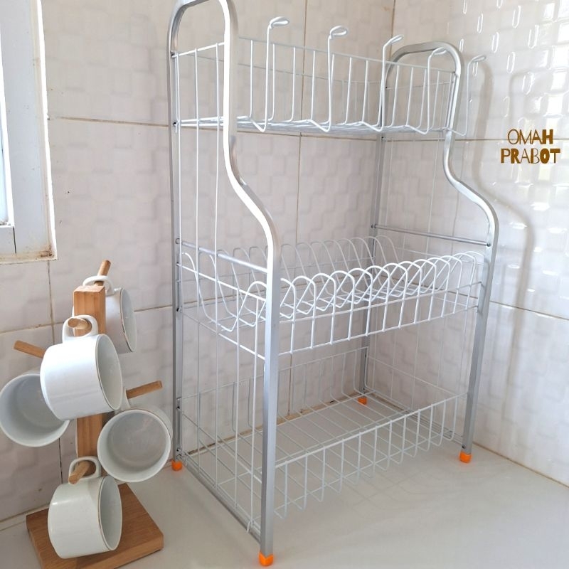 Omah Prabot - Rak Piring 3 Tingkat Rak Piring Kecil Rak Wastafel Rak Pengering Rak Dapur Rak Piring Alumunium