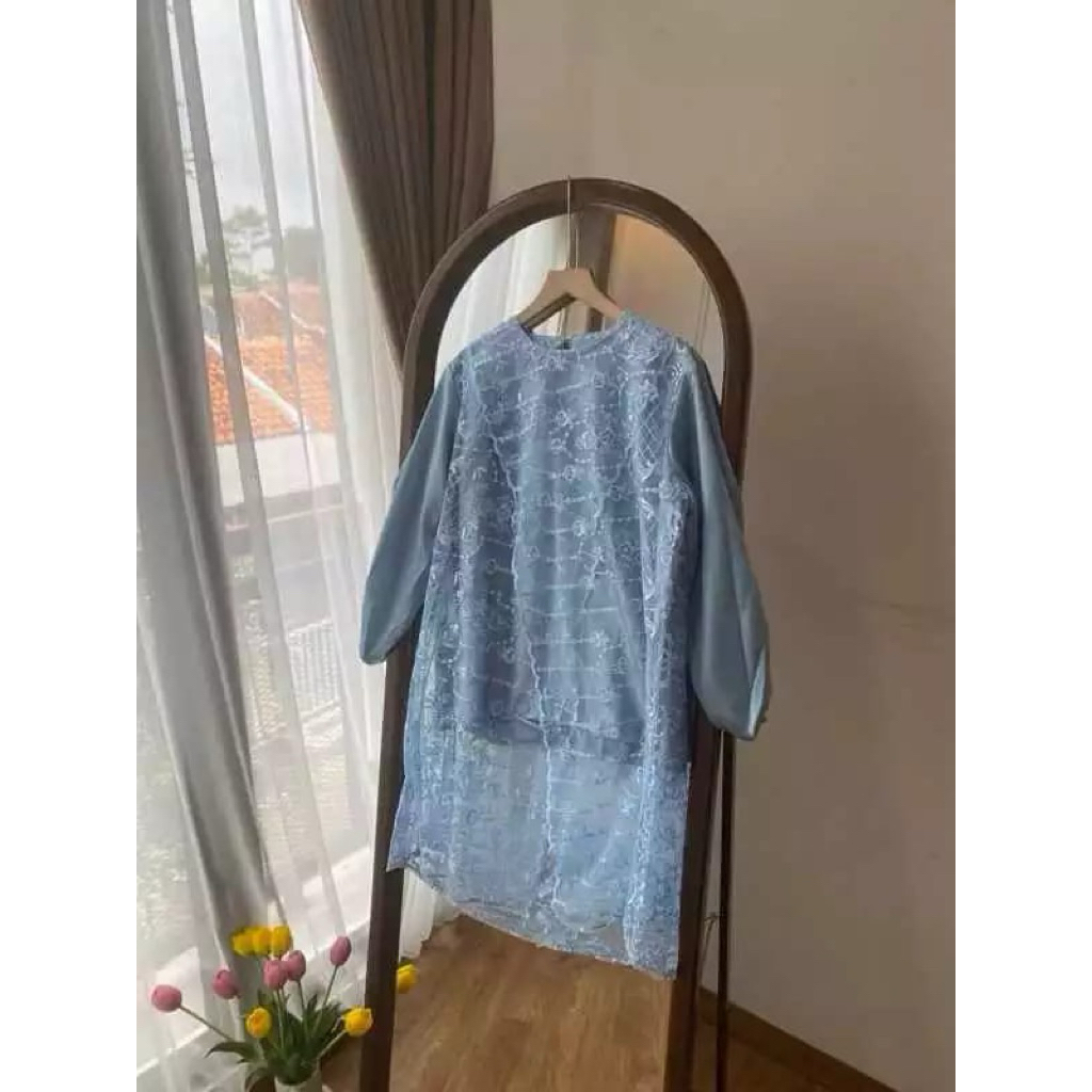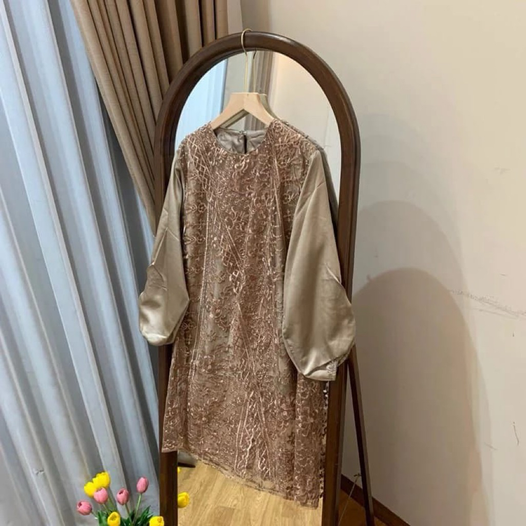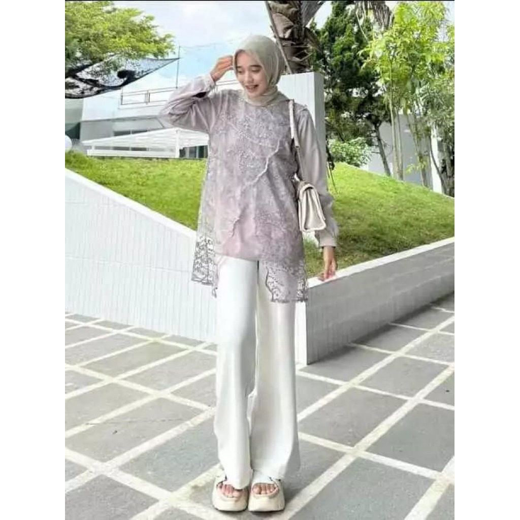Brokat Blus Mazaya Tunik Double Puring Set Inner Velvet Brukat Kondangan