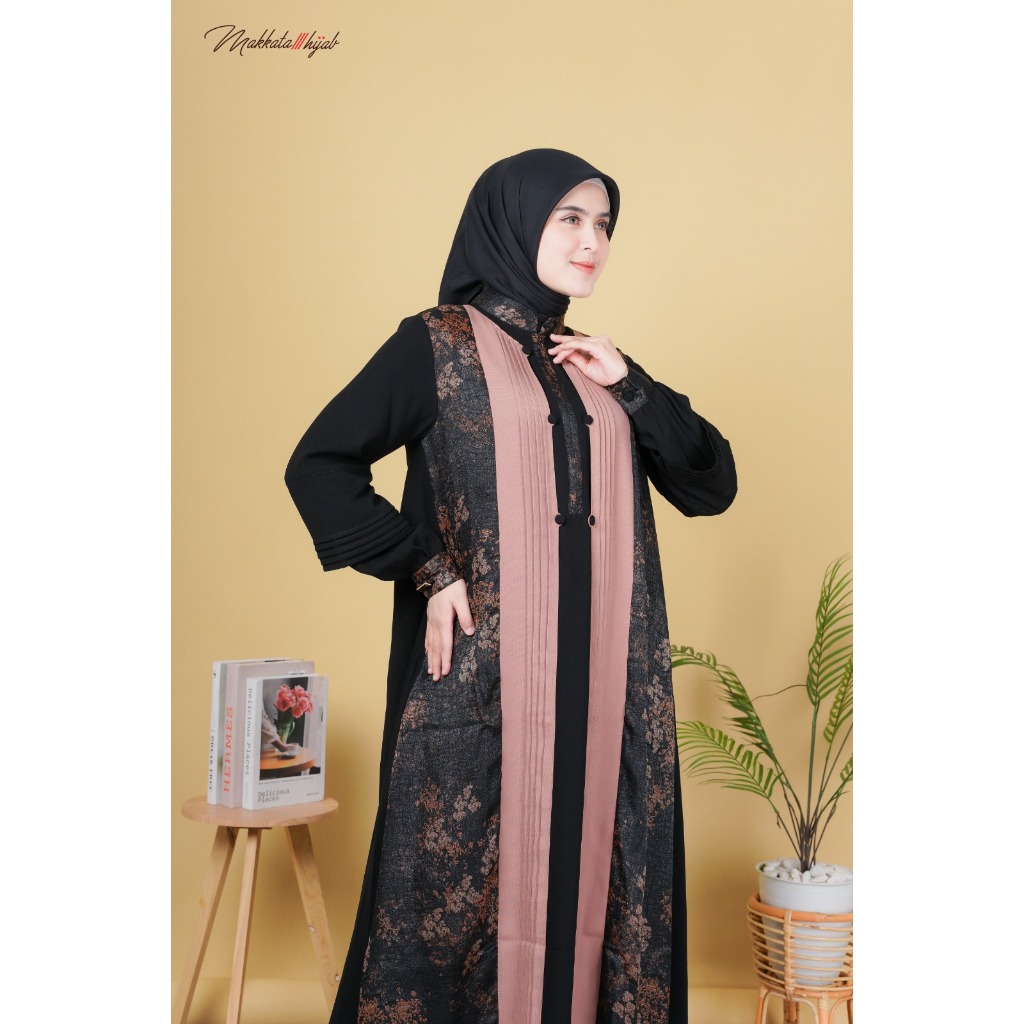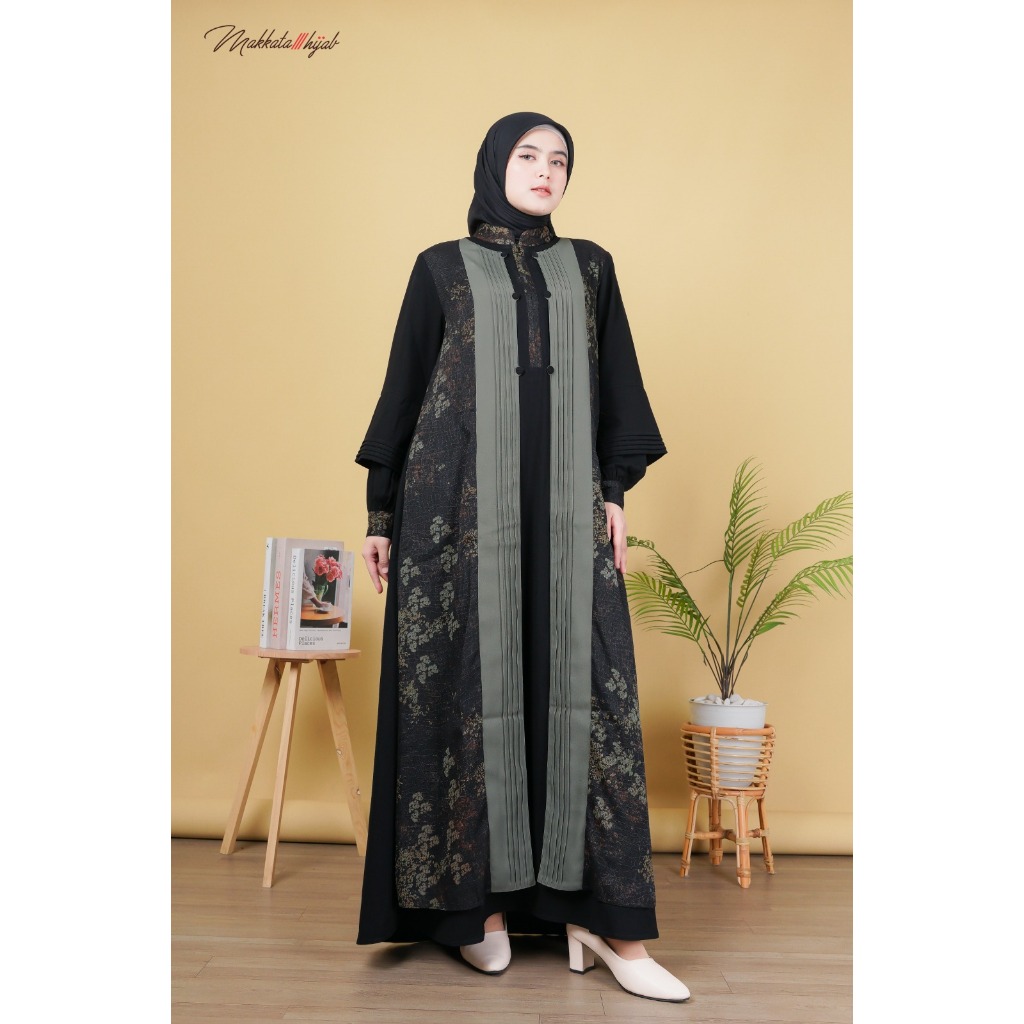 NEW! Lavinia Dress Motif Daun Gamis Wanita Simple Premium Elegan Original Kekinian Terbaru Makkata Hijab