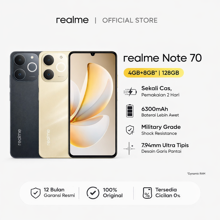 realme Note 70 4GB+8GB*|128GB (6300mAh Battery | Military Grade Shock Resistance 60 x