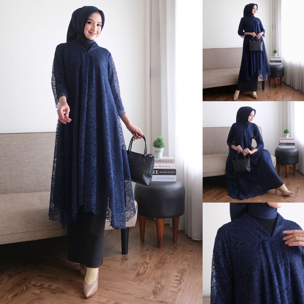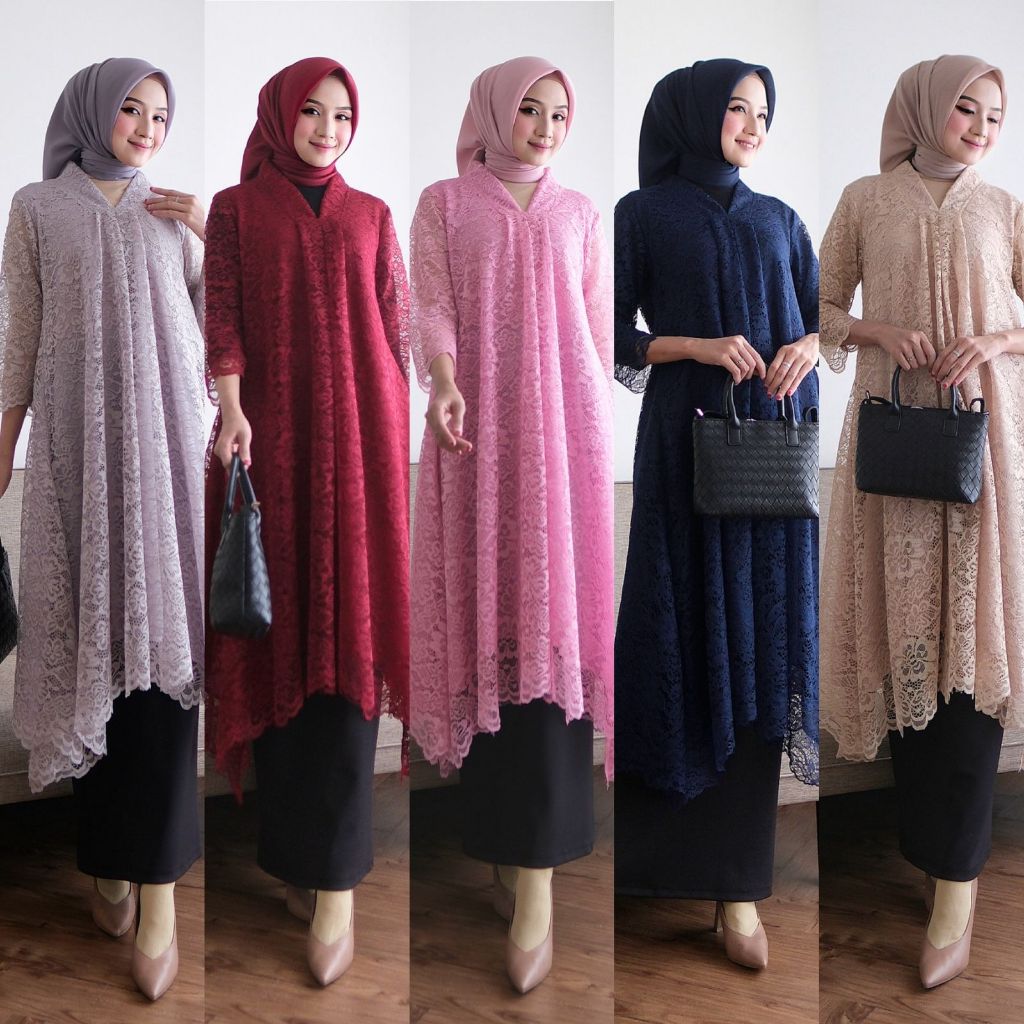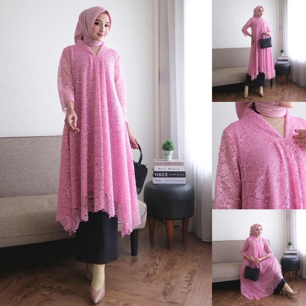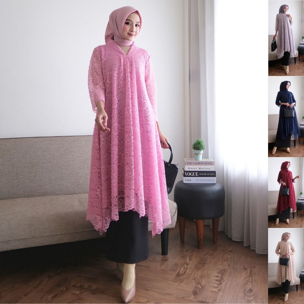 (Suplier) Silvana Tunik Dress Pesta Brukat Wanita Gaun Brokat V-Neck A-line Kebaya Wisuda Kondangan