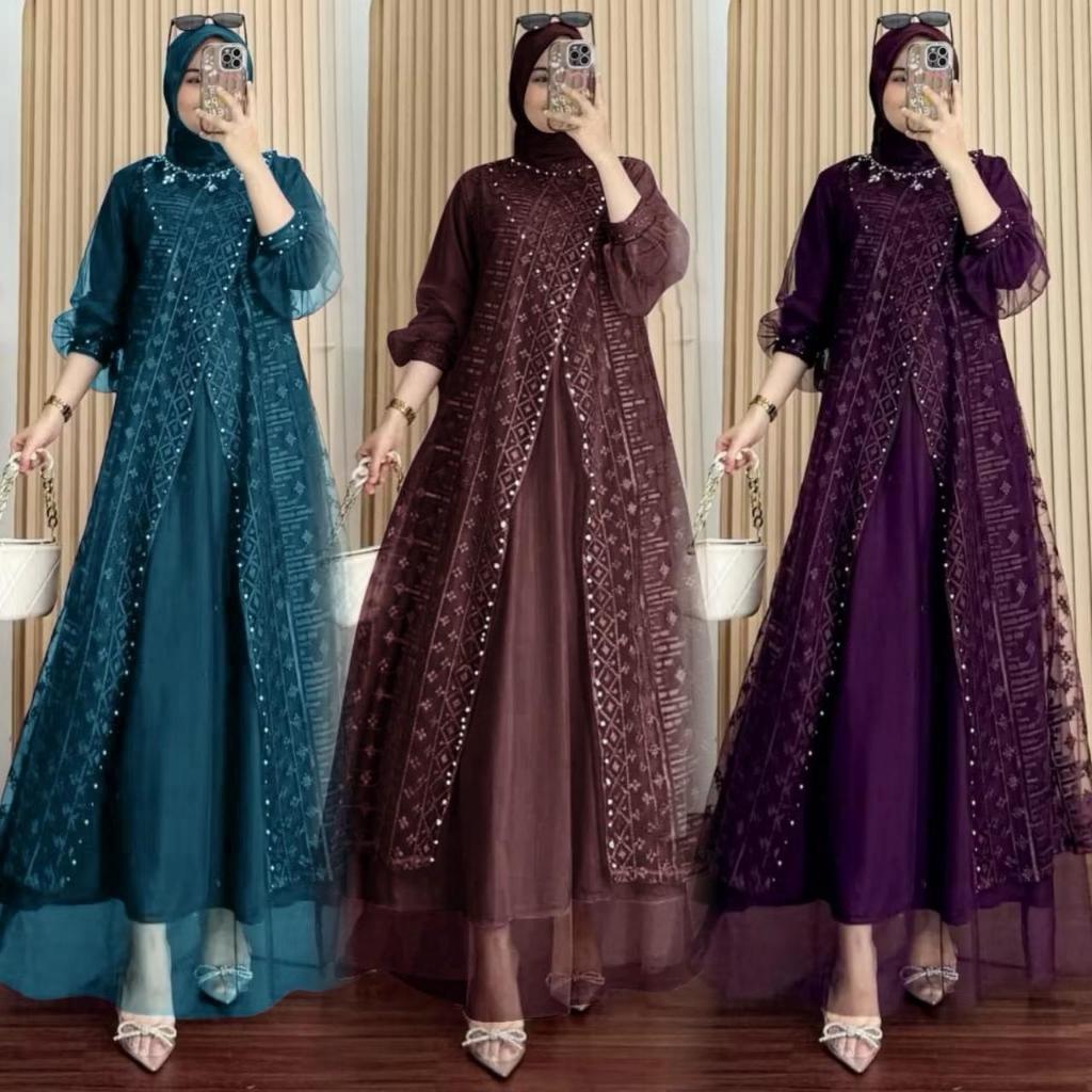 MAXI DELINA ( M-XXXL, ANAK 3-13THN) ) GAMIS MURAH GAMIS MUSLIM GAMIS KONDANGAN GAMIS PESTA SERAGAM KONDANGAN GAMIS COUPL