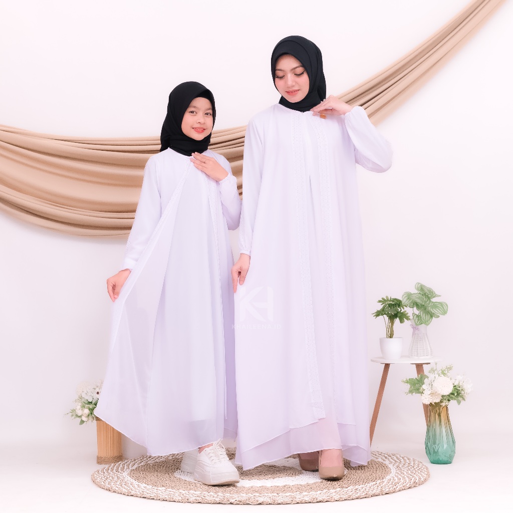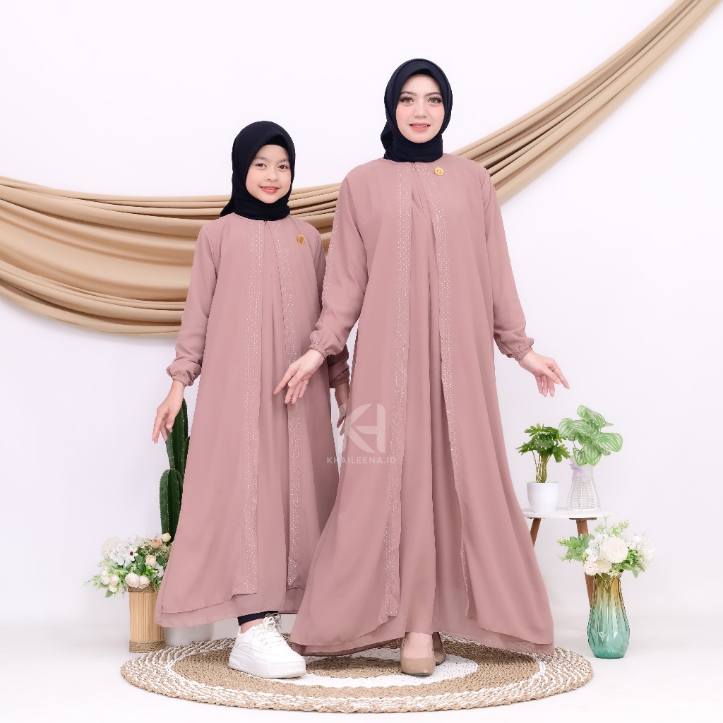 Gamis Couple Ibu Anak Perempuan Mewah Naureen Dress Ceruty Swarovsky baju kondangan wanita kekinian