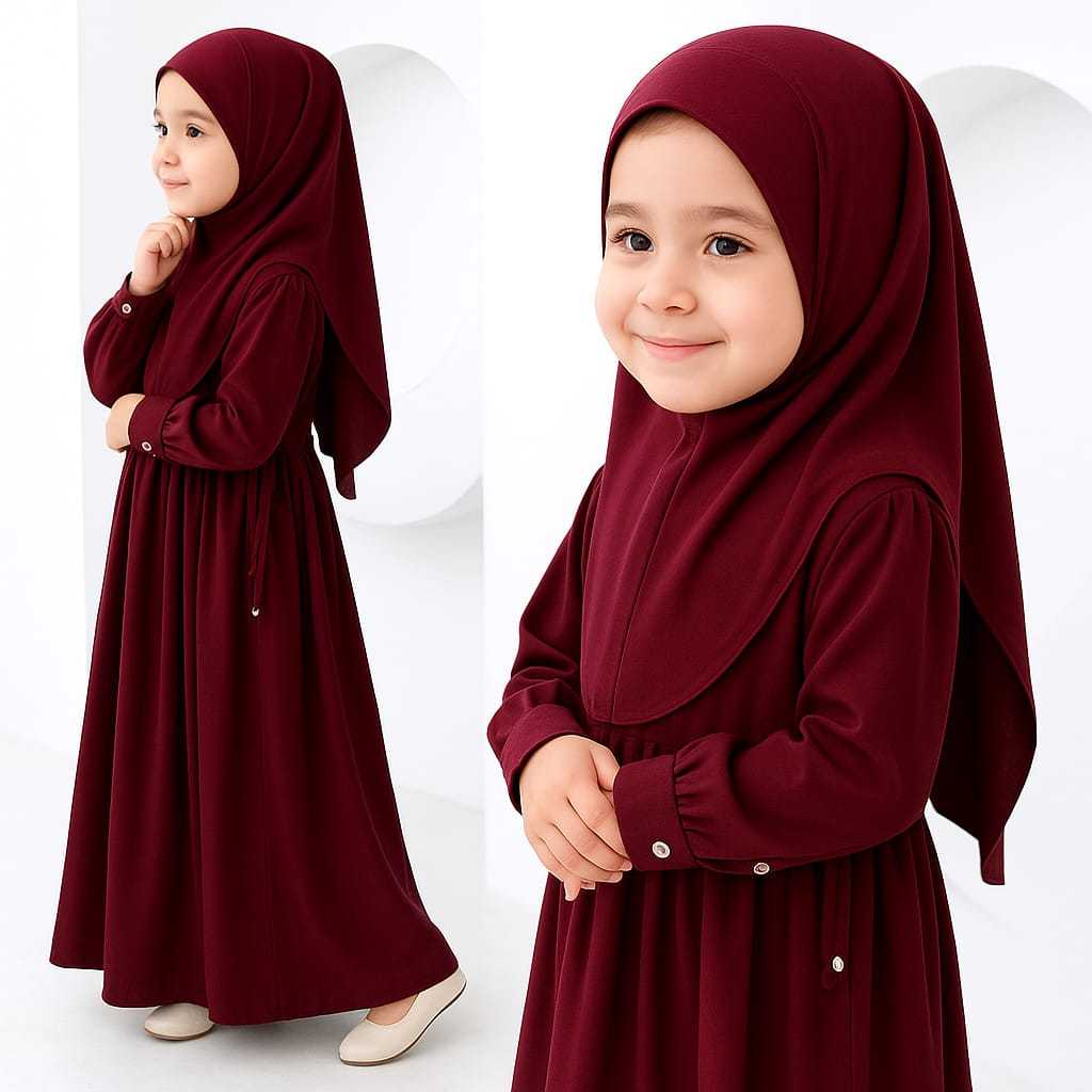 Gamis Abaya Anak Set Hijab Terbaru - Gamis Couple Ibu dan Anak Model Serut