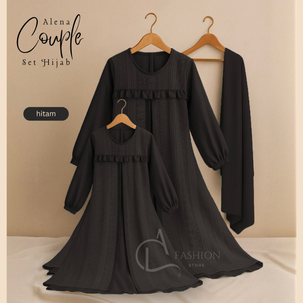 Dress Couple Mom And Kids Baju Gamis Ibu Dan Anak Couple Set Hijab Crinkle Airflow Mix Brukat