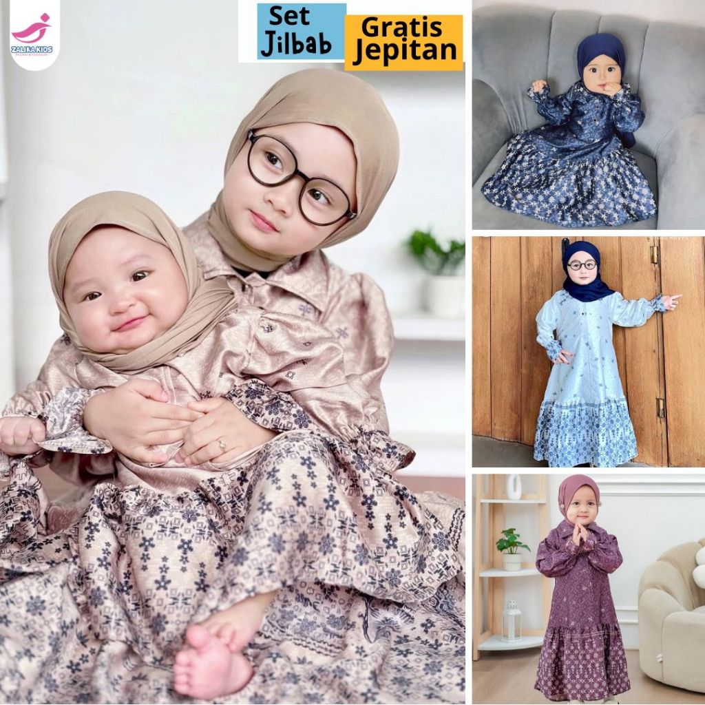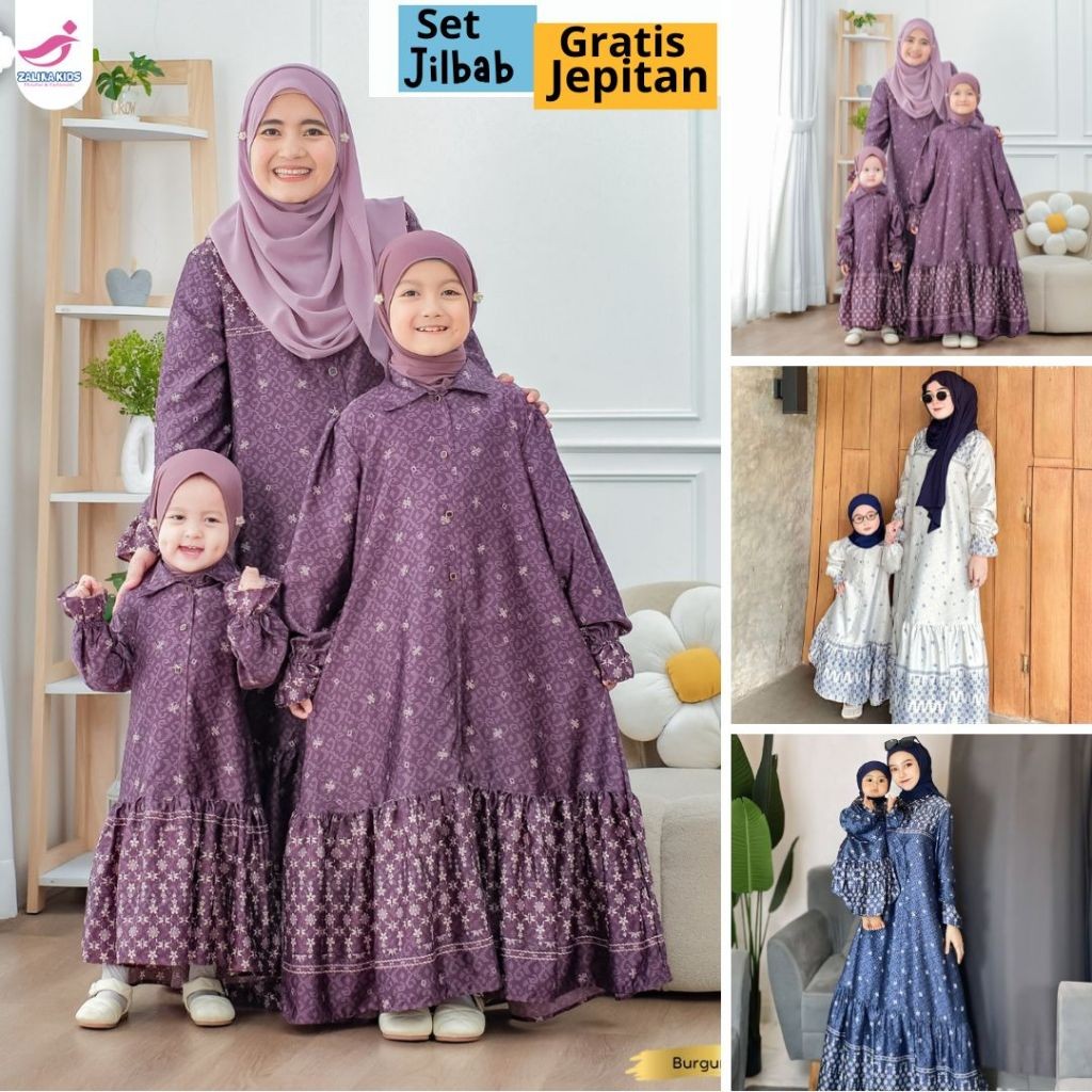 Gamis Couple Ibu dan Anak Perempuan Zalira Kids - Baju Sarimbit Elegan Motif Luxury / Gamis Couple Mom and kids Zaheera
