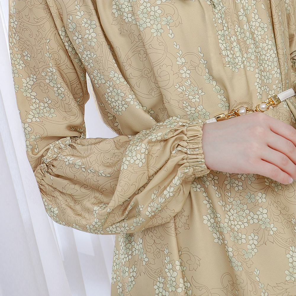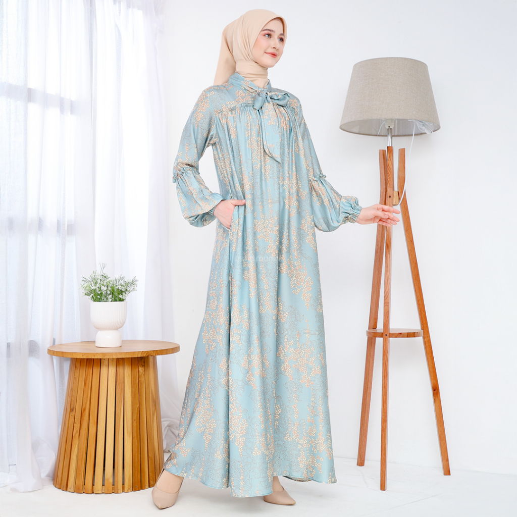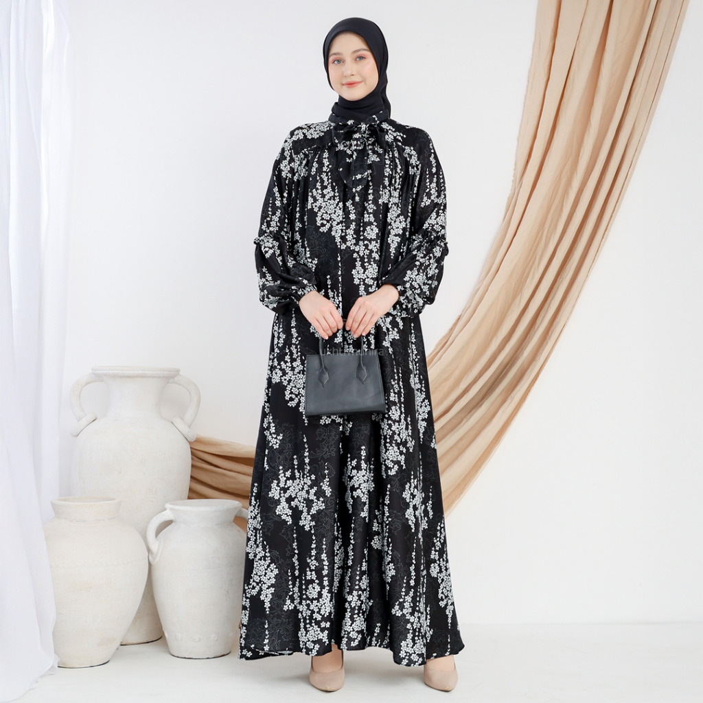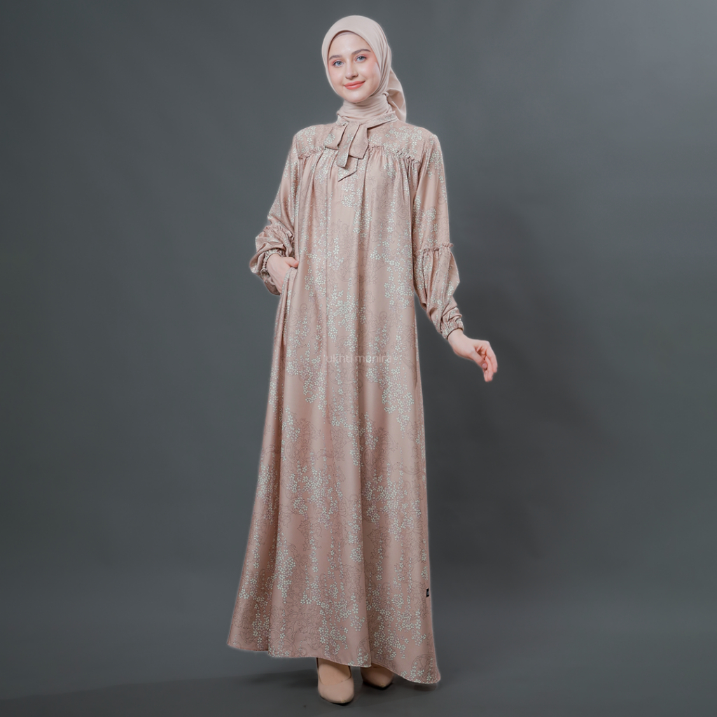 UKHTI MUNIRA - Arina Gamis Abaya Motif Bunga Kecil Berbahan Ameera Silk Premium Busui Friendly