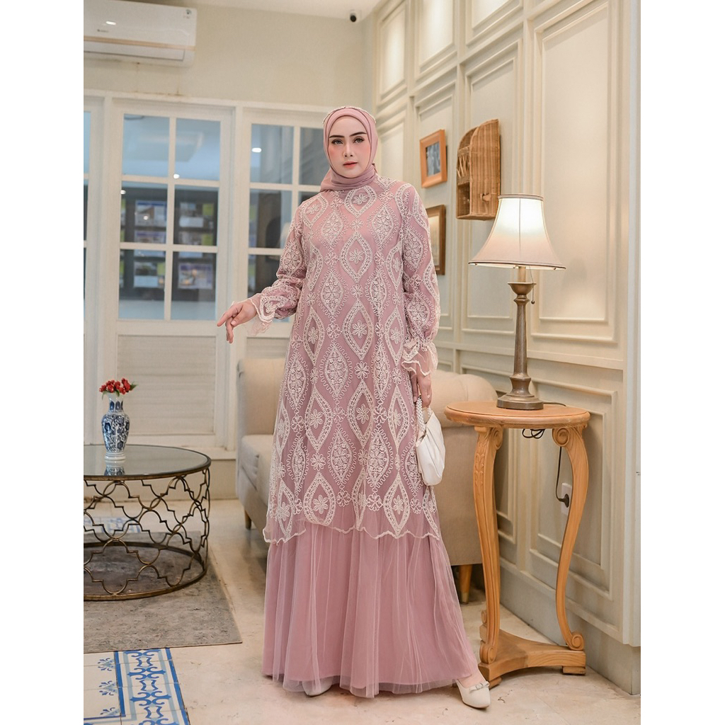 Gamis Pesta SELLIN Tile Kerancang Mewah | Inner Armany Silk Adem | Gamis Kondangan Muslim Premium