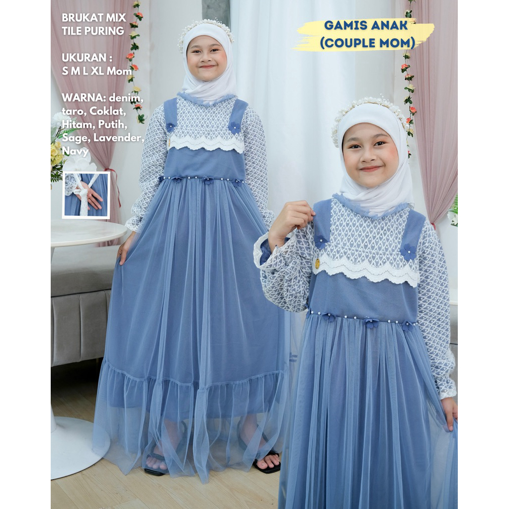 Gamis couple terbaru overall ibu&anak kekinian//Gamis tille mix brukat Norvina terbaru 2025