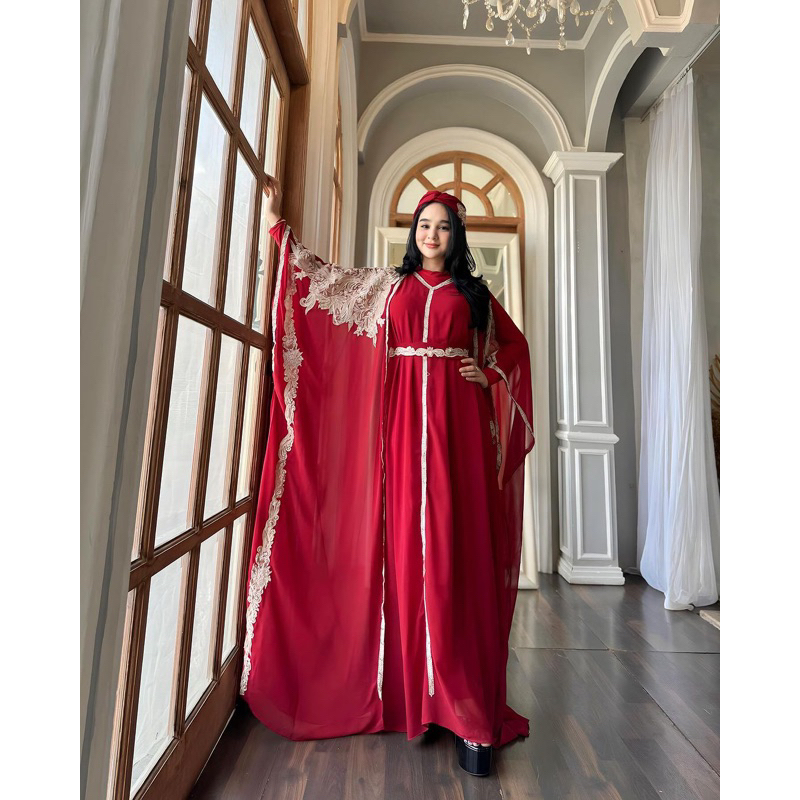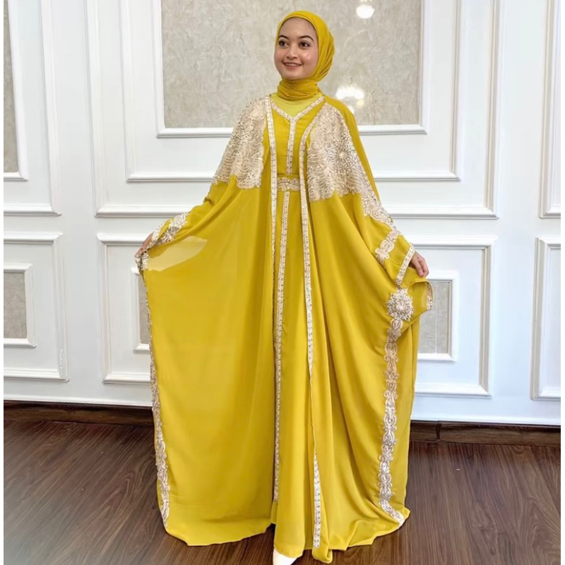 Ready Stock Kaftan Abaya NADLYNE Kaftan Lebaran + Free Inner Gamis Belt Dan Turban Kaftan Abaya Pesta Mewah