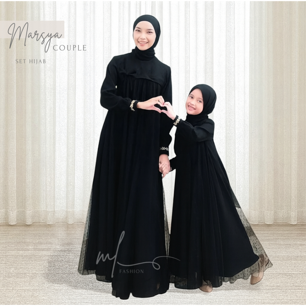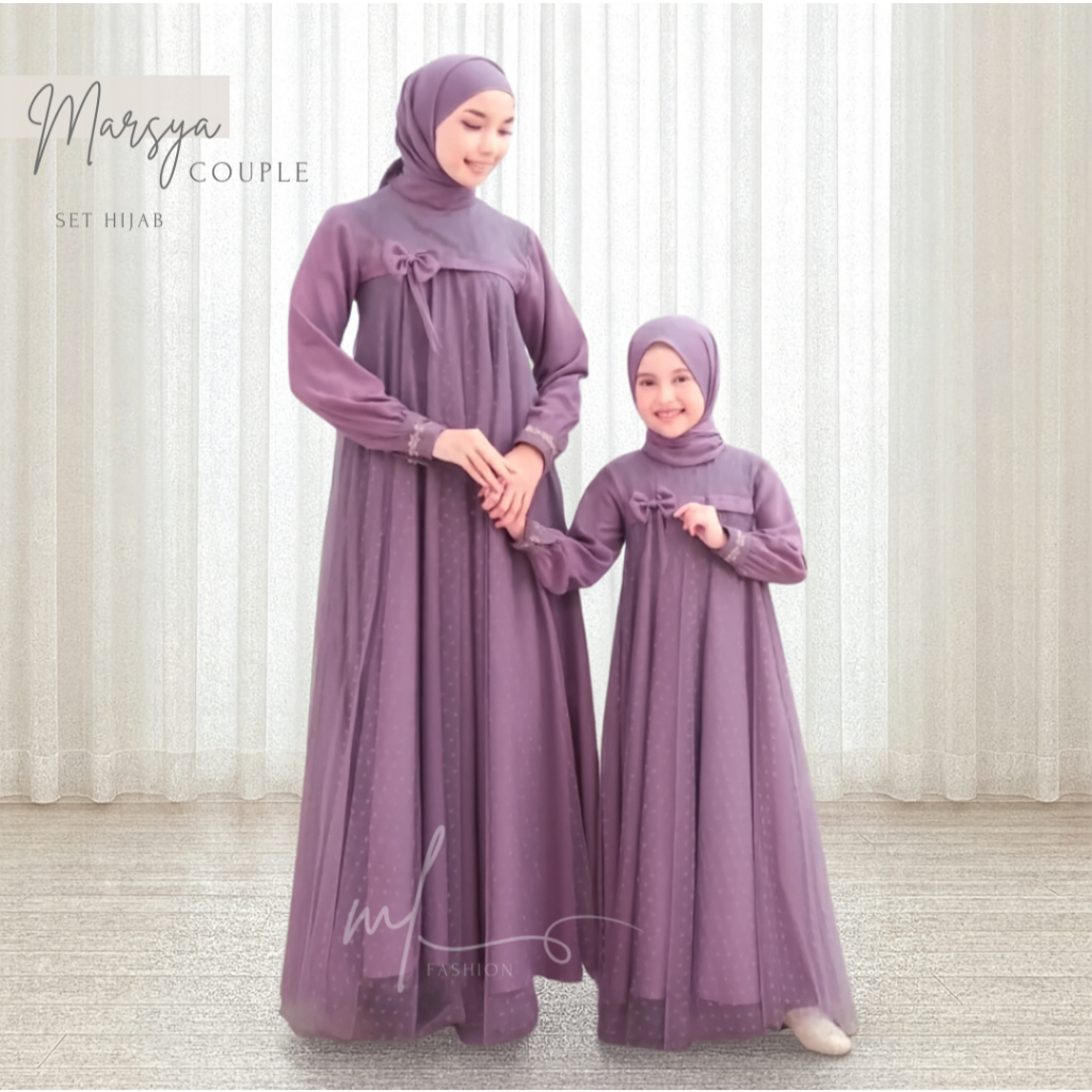 Baju Gamis Couple Mom And Kids Dress Ibu Dan Anak Couple Gaun Crinkle Airflow Mix Tile Dot
