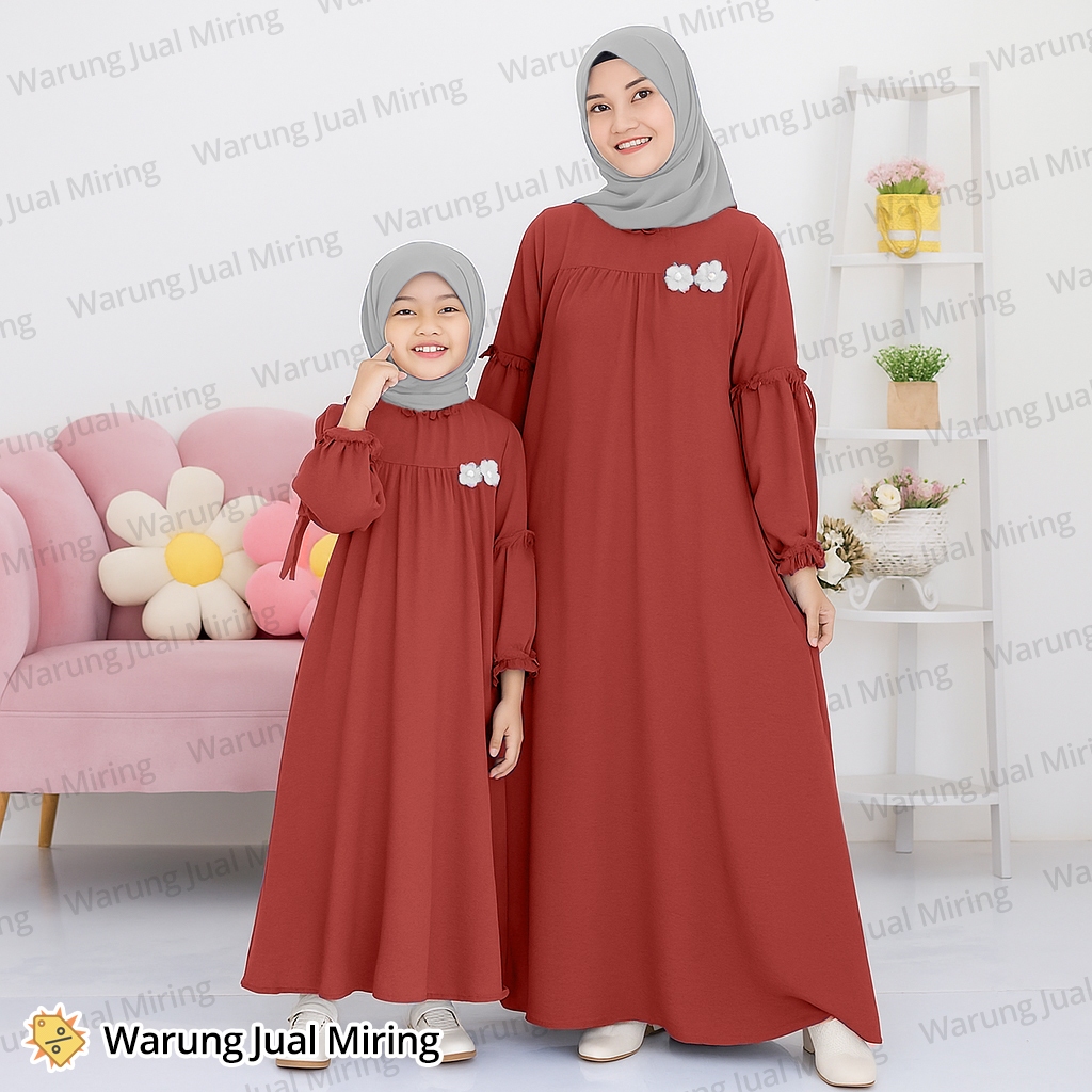 Baju Gamis Couple Ibu Anak Crinkle Airflow Sakura Dress Viral Muslim Cewek Harian Lebaran Pesta Korea Manasik Warna Puti