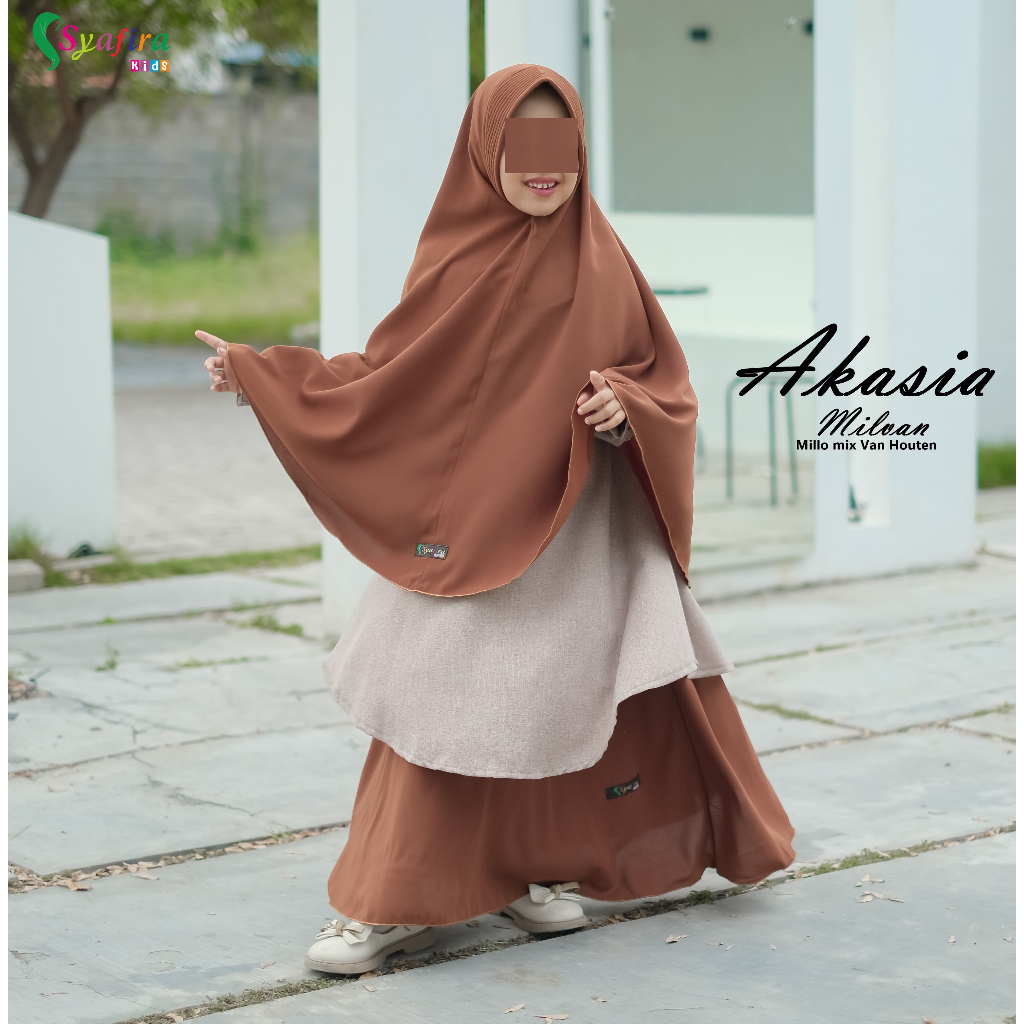 Gamis anak perempuan syar'i Akasia Madinah dan Emboss by syafira kids bisa family couple/sarimbit