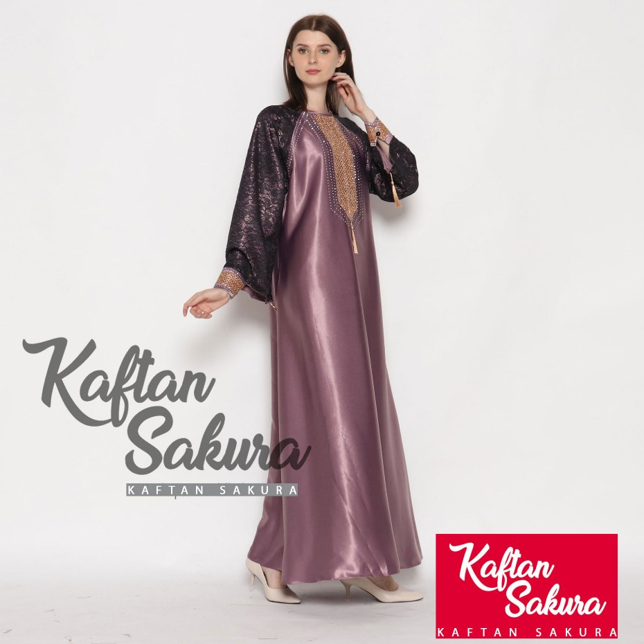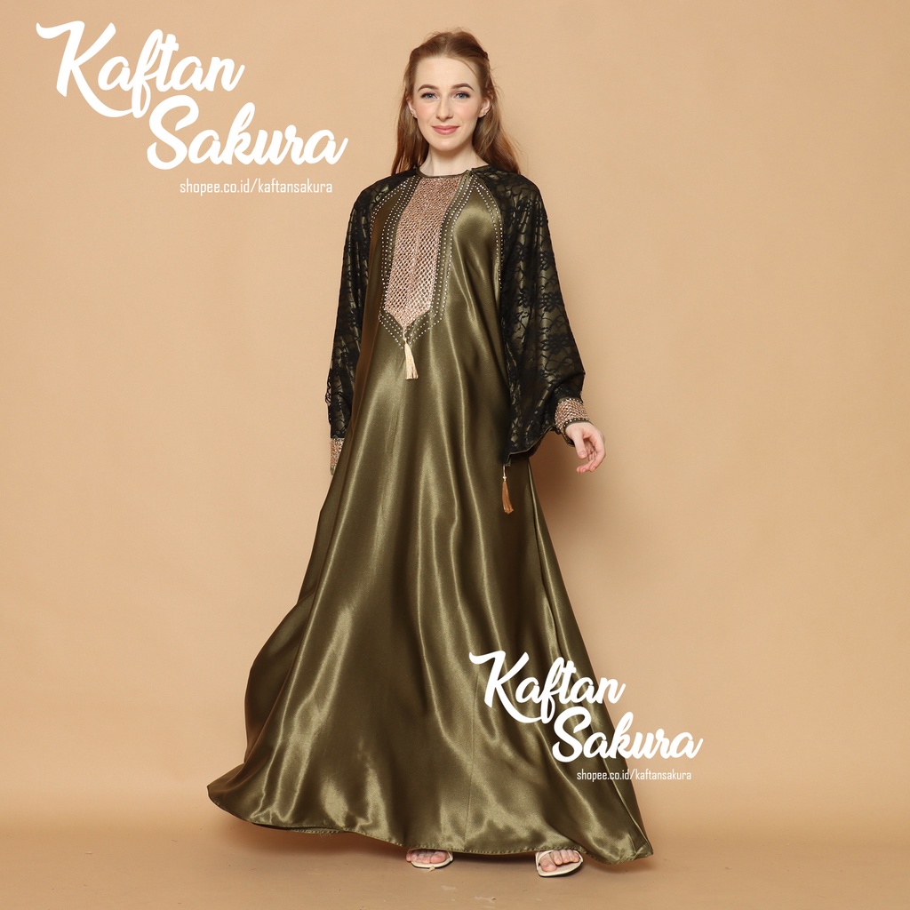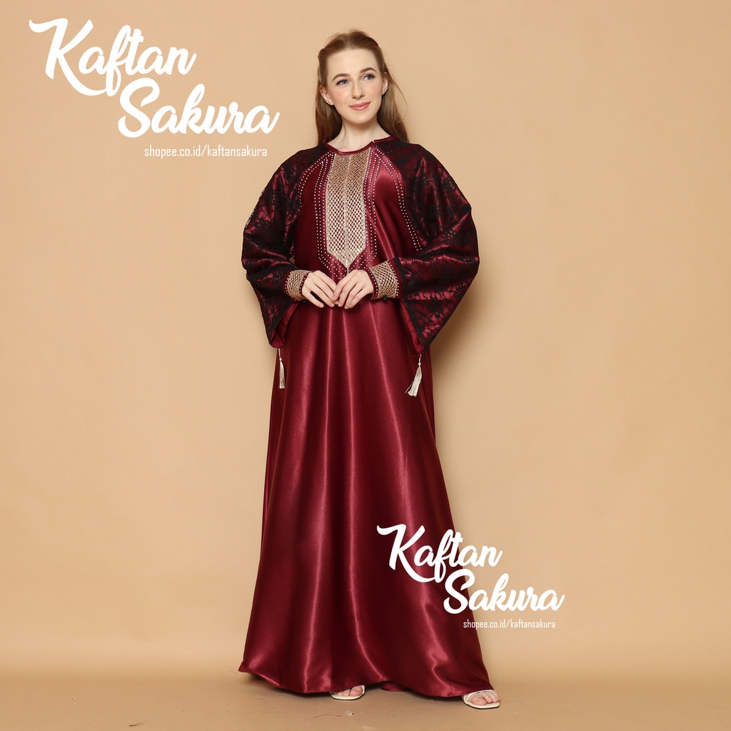 BAJU KAFTAN WANITA BAHAN SATIN PREMIUM WARNA HITAM MAROON NAVI UNTUK LEBARAN ALL SIZE MEWAH