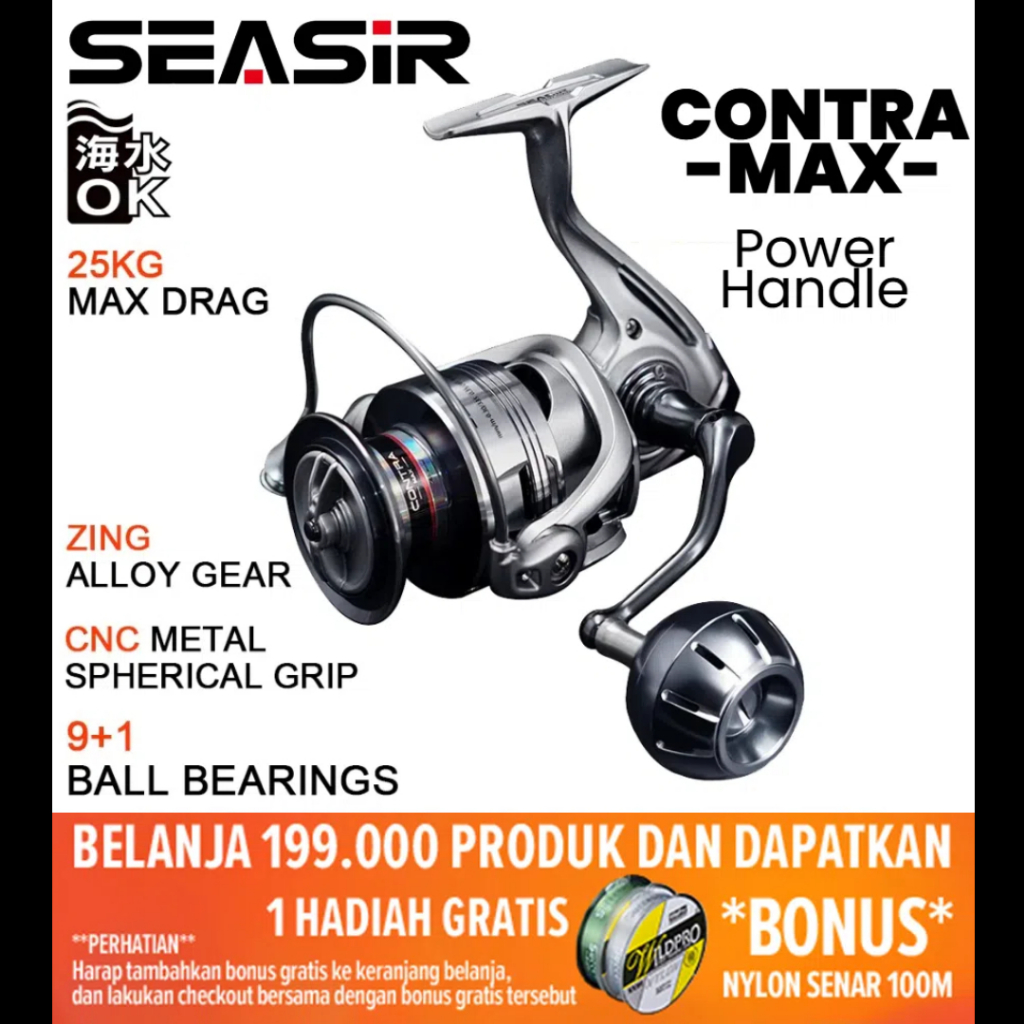 [OFFICIAL] Reel Pancing POWER HANDLE SEASIR CONTRA MAX 8000 Reel Spinning Reel Putar Gulungan, Saltwater All Metal Laut