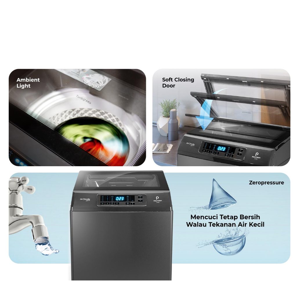 POLYTRON Mesin Cuci 1 Tabung Zeromatic Laguna Hijab 9 KG PAW 9028
