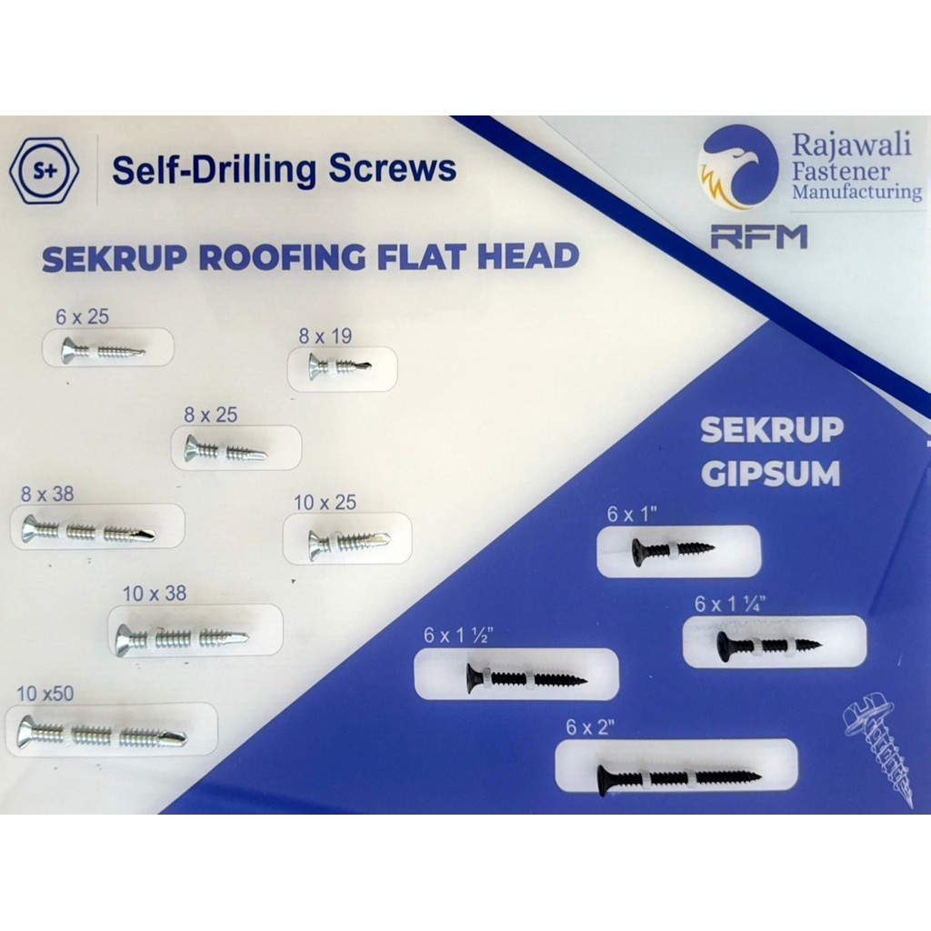 SDS FH / Sekrup Flat Head 8x25 (2.5cm) (Isi 50pcs) - Kepala Datar / Sekrup GRC / Baut Flat Head / Skrup FH / Sekrup Data