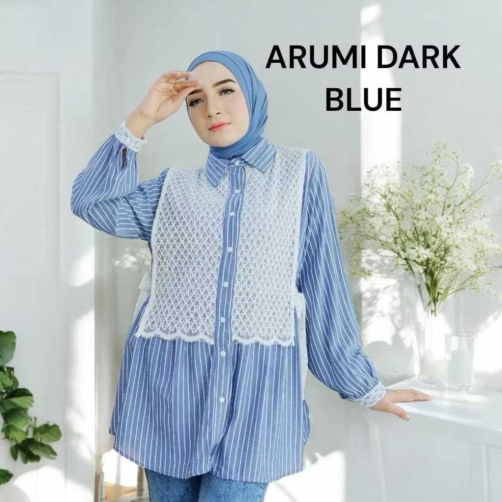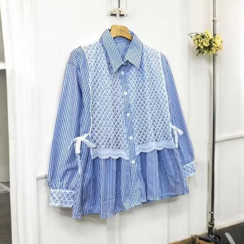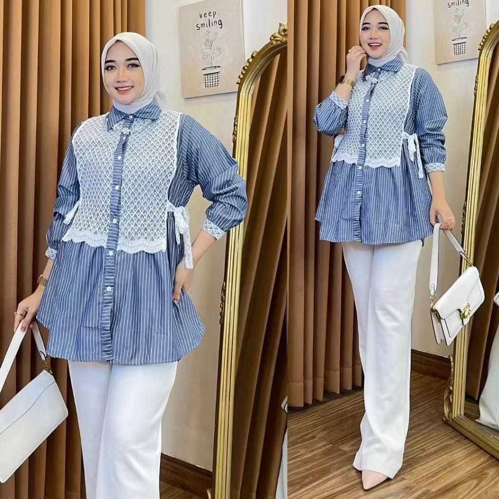 Terlaris Baju Atasan Kemeja Wanita Terbaru Kemeja Salur Mix Brukat Wanita