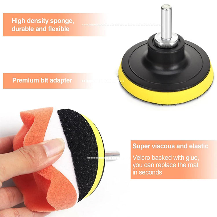 JLD Spon Busa Poles Set 14pcs Sponge Wool Polishing Body Motor Mobil Set 100MM/125MM Berisi Pad Velcro Adaptor