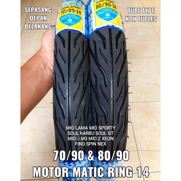 TERMURAH - 1 SET [ SEPASANG ] BAN LUAR MOTOR MATIC METIK 70/90 & 80/90 RING 14 , Mio Sporty Mio soul karbu soul Gt mio J mio M3 Fino Spin Nex