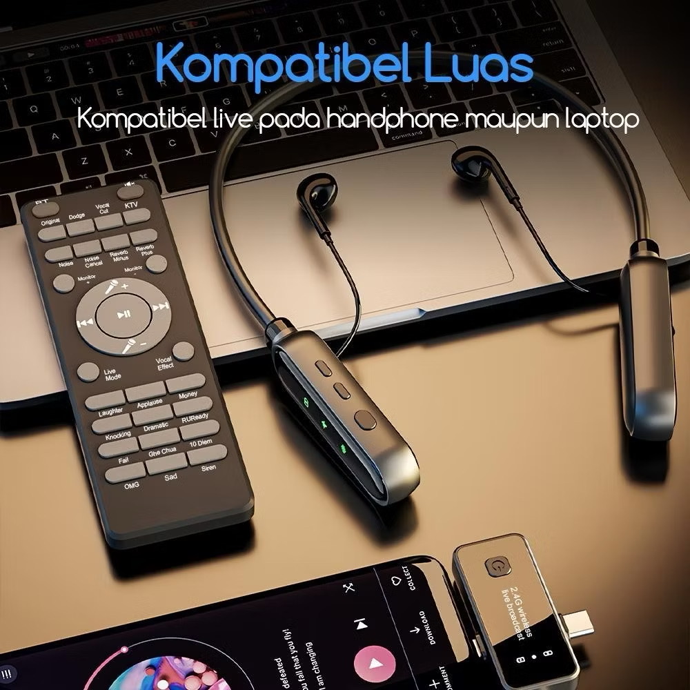 Bonkyo Kartu Suara Live 3-in-1 | Microfon Wireless Clip-on + Soundcard untuk HP | Mixer Audio Live Streaming & Karaoke