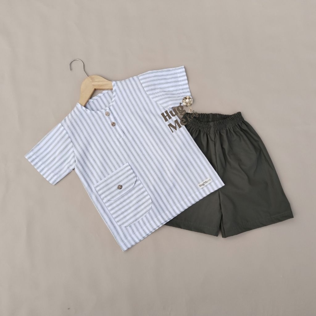 One Set/ Stelan Anak Laki-laki Perempuan / Salur / Belang-belang/ Santai/ Formal / Putih Army / Baju & Celana Fashion