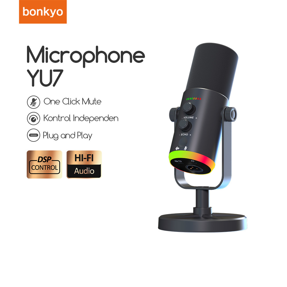 Bonkyo Mikrofon YU7 Mikrofon dinamis peredam bising 2-in-1 USB+XLR untuk rekaman dan streaming langsung game