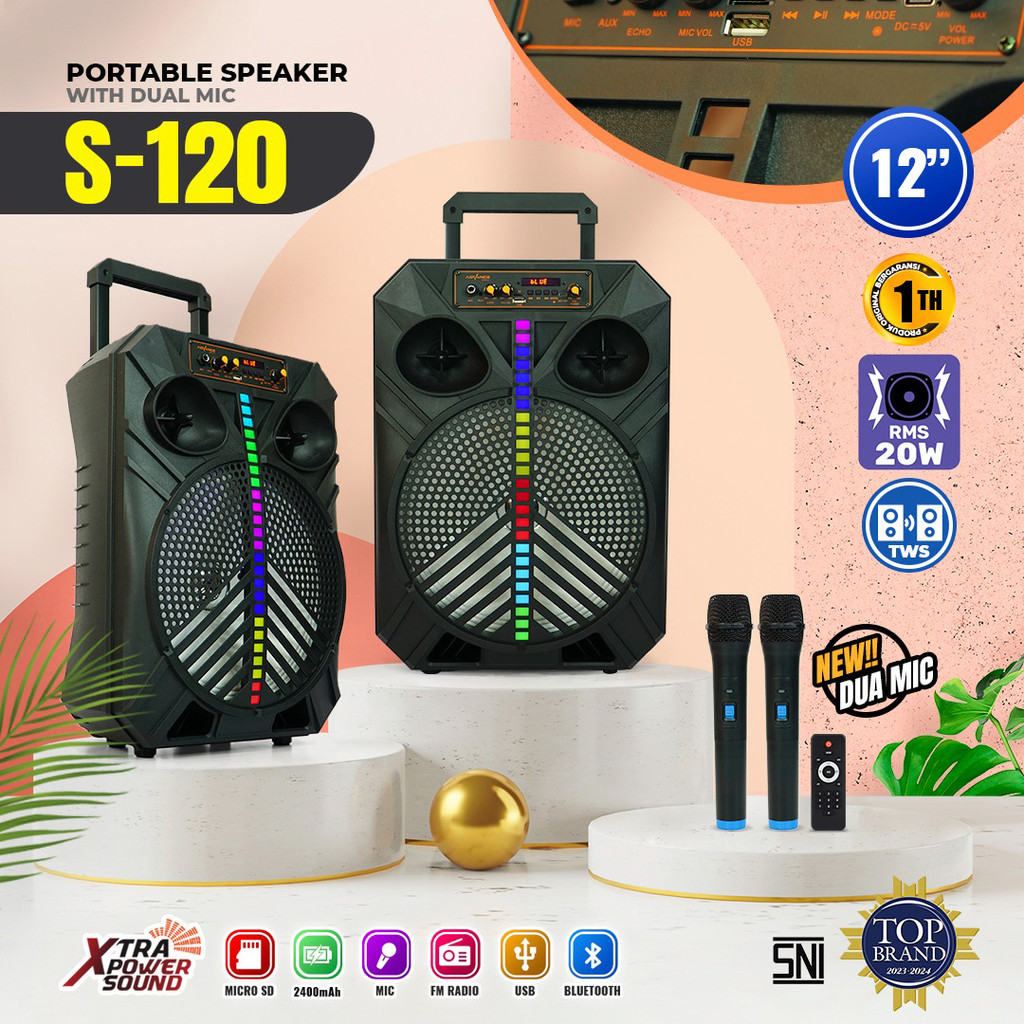Speaker Bluetooth Music Karaoke 12Inch S-120 Advance Free 2 Mic Gratis Ongkir