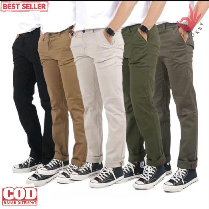 FREE ONGKIR Celana Chino Panjang Jumbo Pria Premium Bahan Katun Nyaman Dipakai Kerja Seharian Ankle Pants Cowok