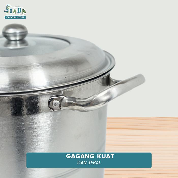 SINDA Panci Kukusan Stainless Steel Anti Karat 30CM Kuat Tebal Food Grade Handle Anti Slip Cocok