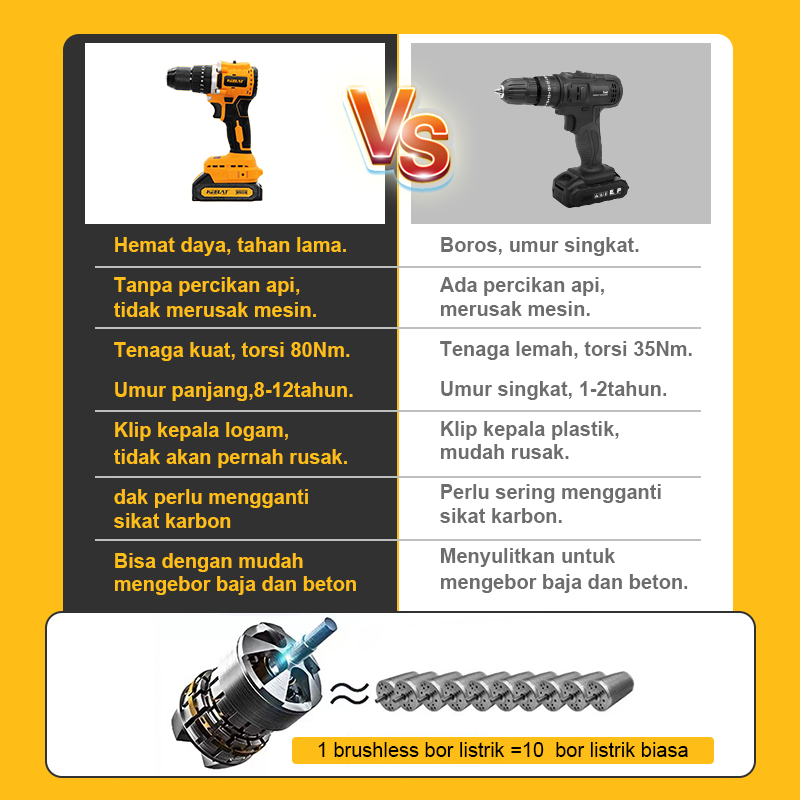 KEELAT Brushless Bor Baterai Mesin Bor KCD007 80N.M 10mm Cordless Impact Drill Dapat Mengebor Beton Besi Kayu