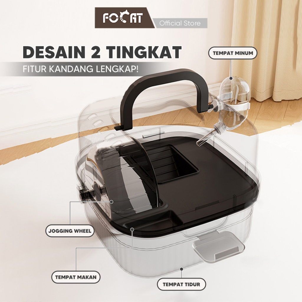 FOCAT Kandang Hamster Portable 2 Tingkat F33 Kandang Mini Hamster Transparan Fasilitas Lengkap