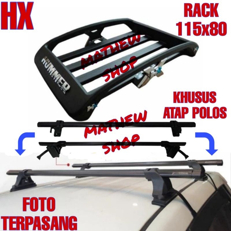 Paket Roofrack Rak Atap Mobil Hummer + 2Pc Crossbar Cross Bar Kaki Rack Jepit Body Dyson