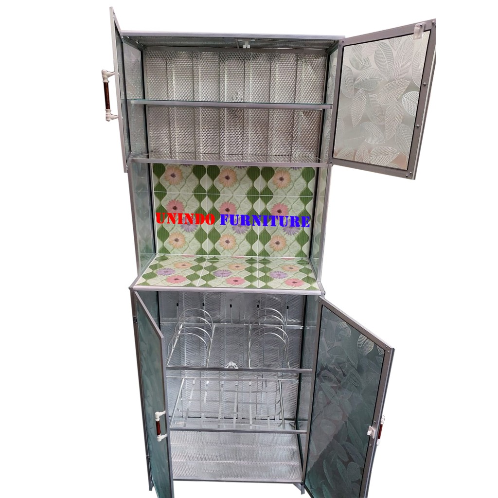 lemari kaca dapur RAK PIRING LEMARI DAPUR ALUMINIUM MINI 2 PINTU terlaris rak piring minimalis modern