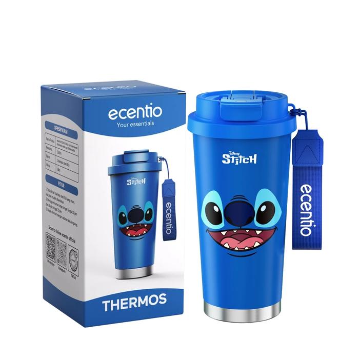 Ecentio Disney Stitch Premium Botol Minum Stainless Sus 316 Tahan Panas dan Dingin 530ml Portable
