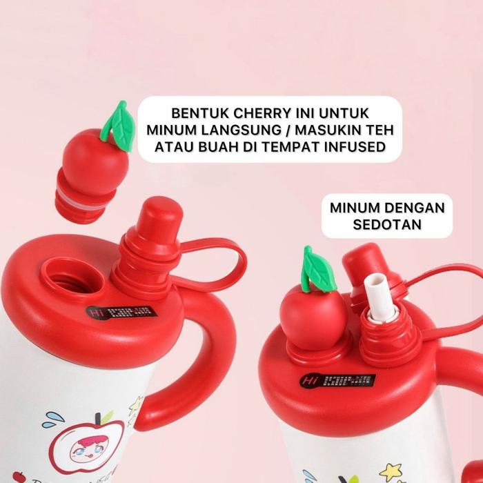 SUNWAYSTORE - Tumbler Cherry On Top 800ml Stainless SUS 316 / Tumbler Botol Minum 800ml Lucu /