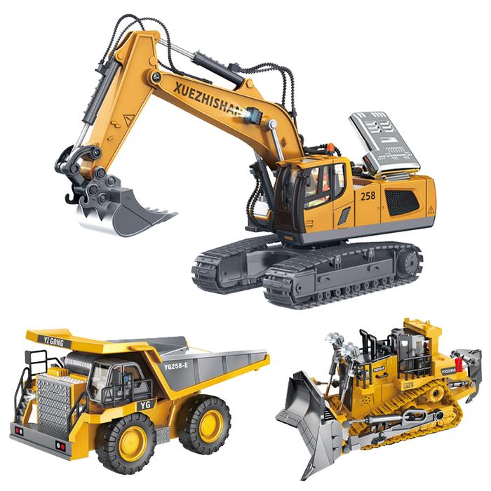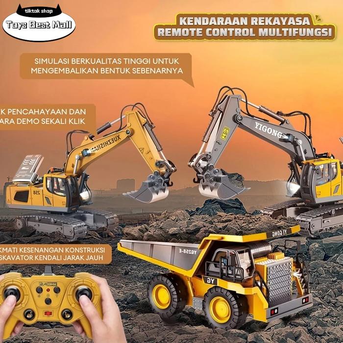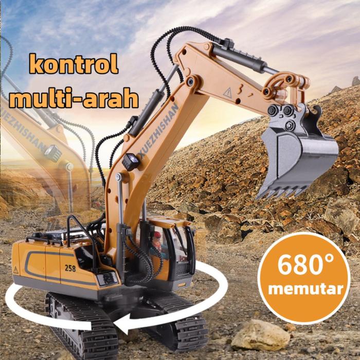 ToysBestMall Remote Control Mainan Anak Excavator RC 2.4GHz 11 Saluran Logam Paduan - Lampu LED,