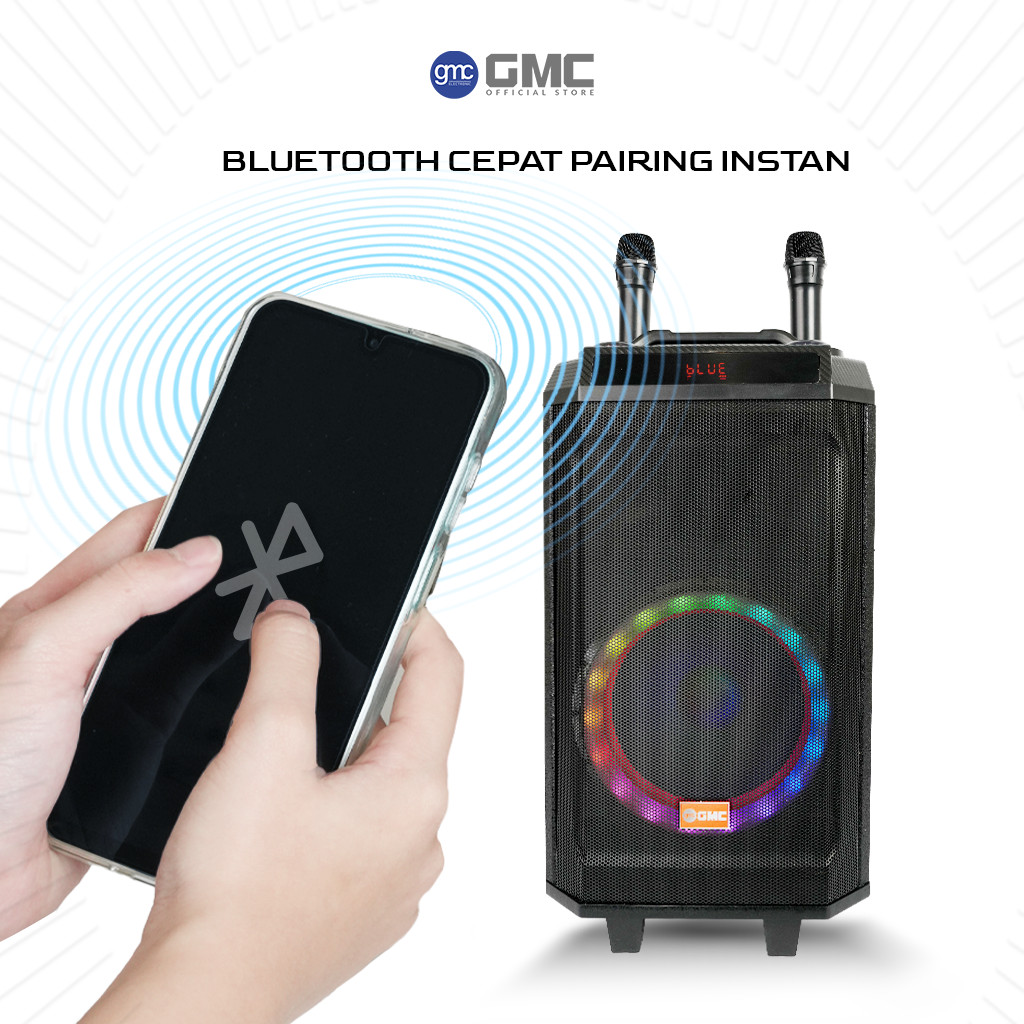 Speaker Bluetooth Karaoke GMC 883K – Speaker 10" – 200W, USB, SD, AV In, FM Radio, Karaoke Jack, Wireless Mic Support