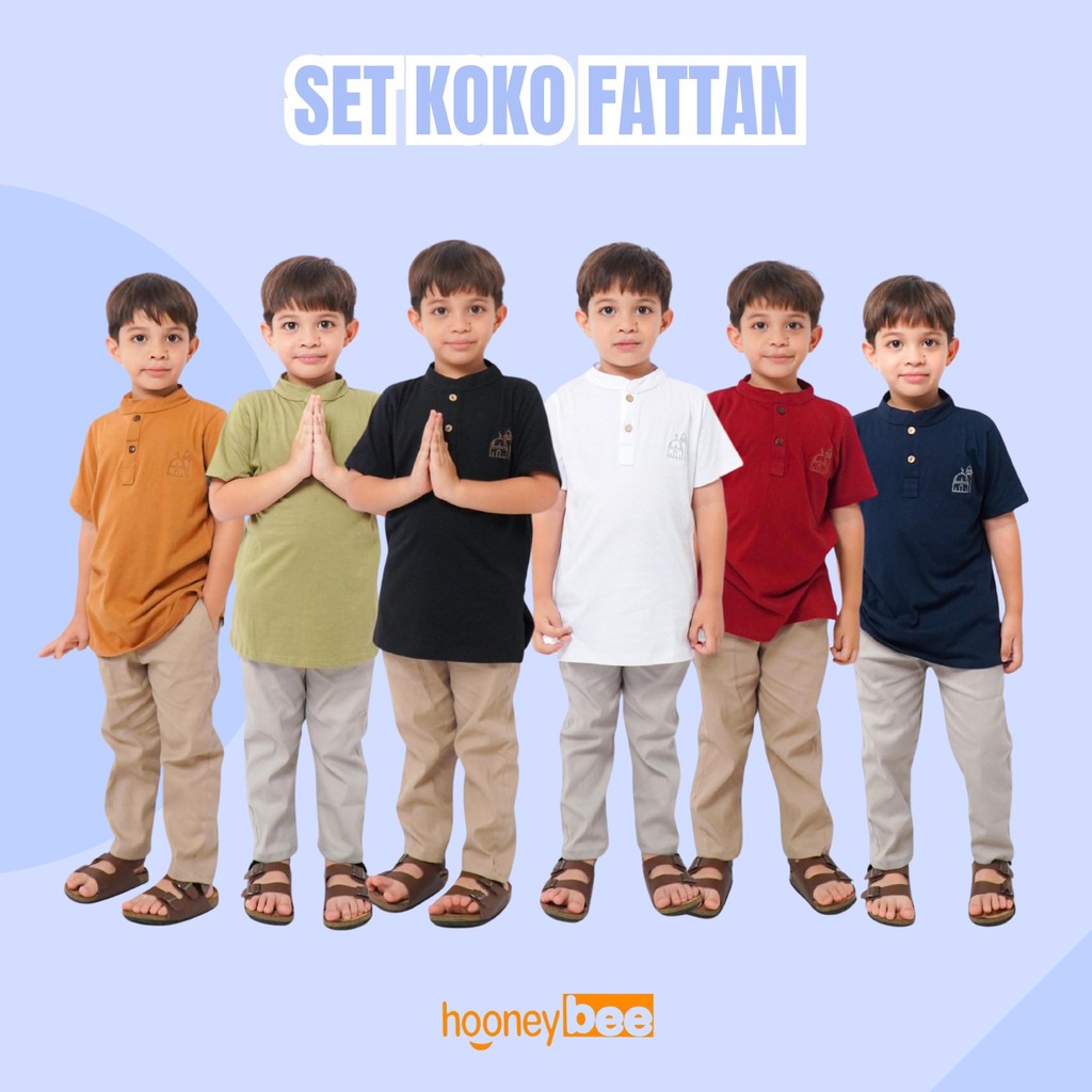 Hooneybee Fattan - Setelan Koko Anak Laki-Laki [Size 1-5 Tahun ] Baju Koko Kaos Cowok Adem Dan Nyaman