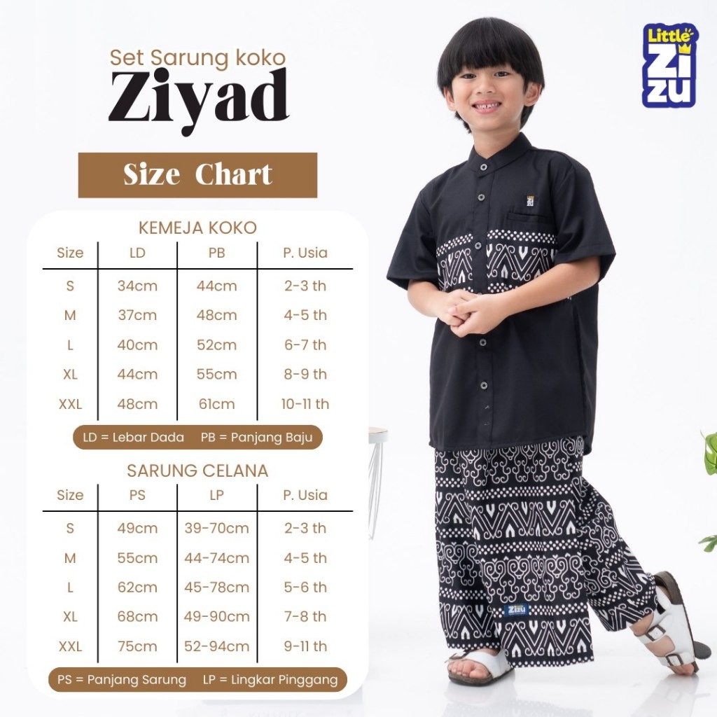 Little Zizu - Set Sarung Koko Ziyad Bahan Toyobo Kombinasi Katun Mikro