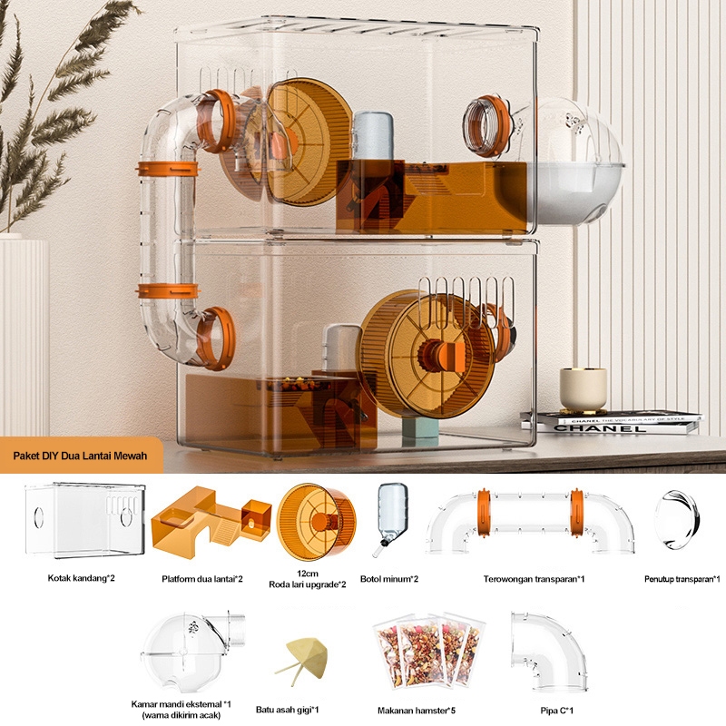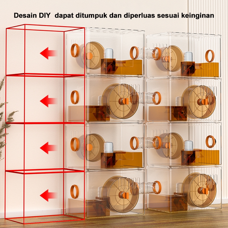 Kandang Hamster Khusus Beruang Jin Villa Mewah Transparan Akrilik Ruang Lebar Tahan Gigit Berkualitas Ruang Dual Space