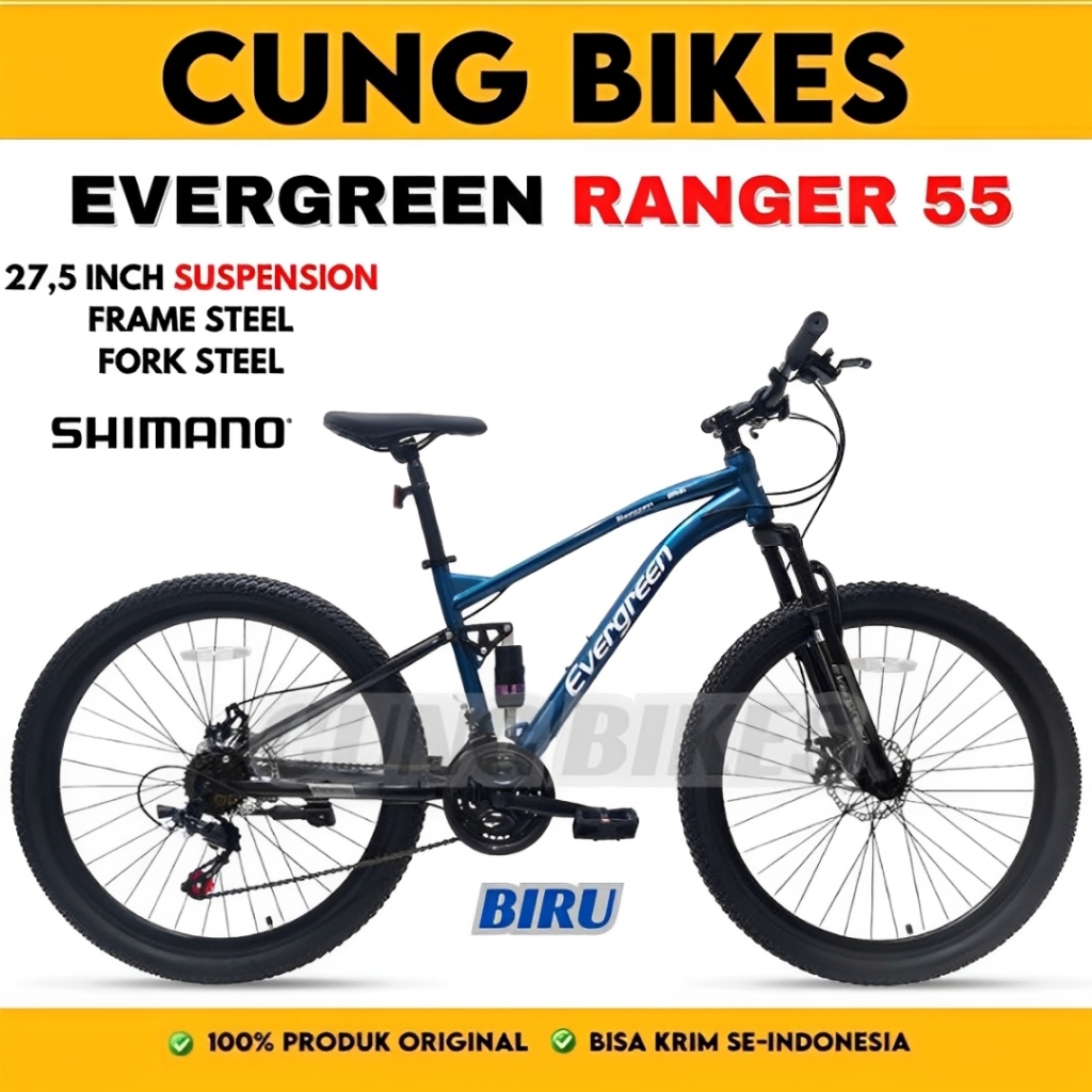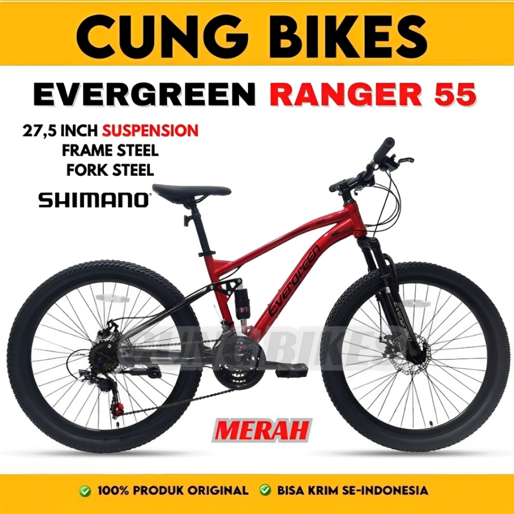 Sepeda Gunung Evergreen Ranger R55 R50 R35 Full Suspension Shifter 3 x 7 Speed Shimano MTB 26 27,5 Inch