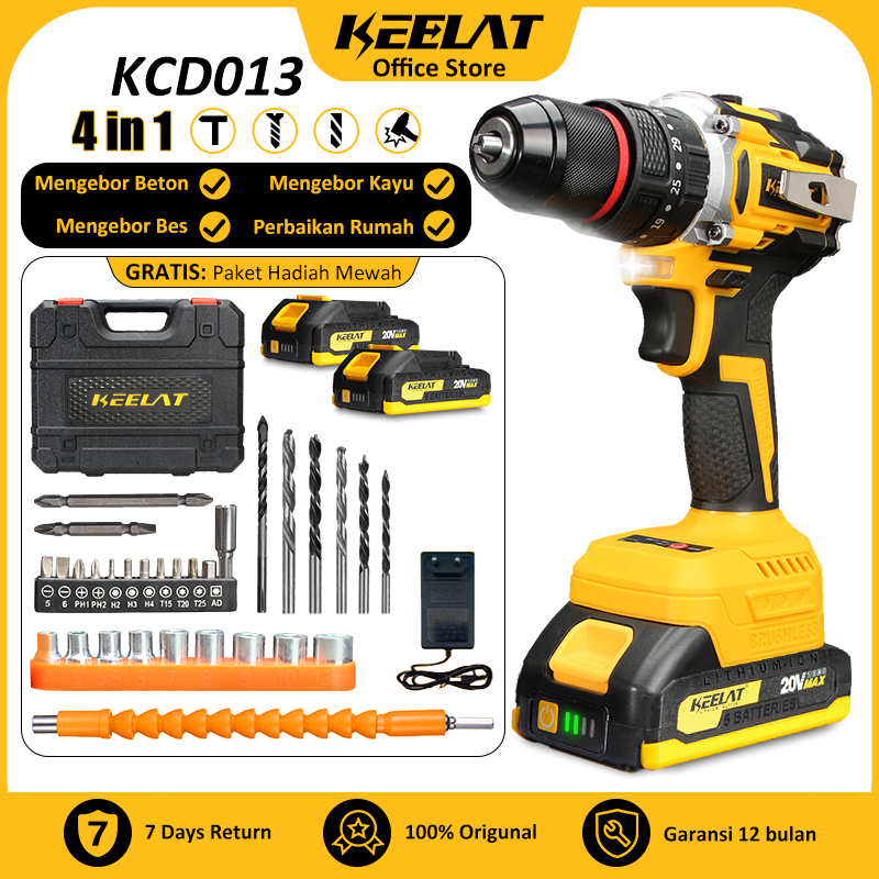 KEELAT KCD013 NEW Brushless Mesin bor Bisa Diketuk 2baterai 10mm Cordless Drill Cordless Impact Drill Screwdriver Multif