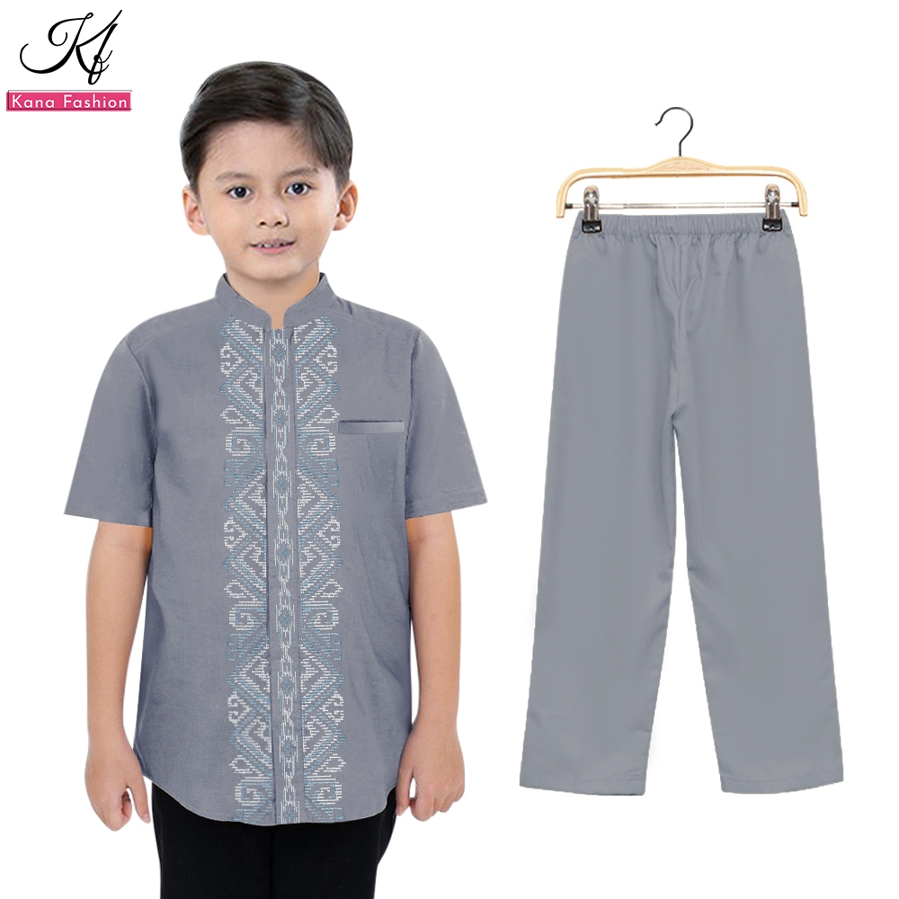 Kana Fashion Baju Muslim Set Setelan Koko Anak Anak Laki-Laki Kombinasi Bordir Batik 4-10 Tahun Terlaris Dan Termurah Le