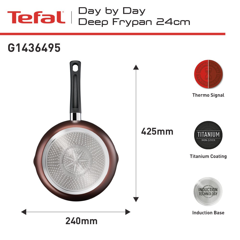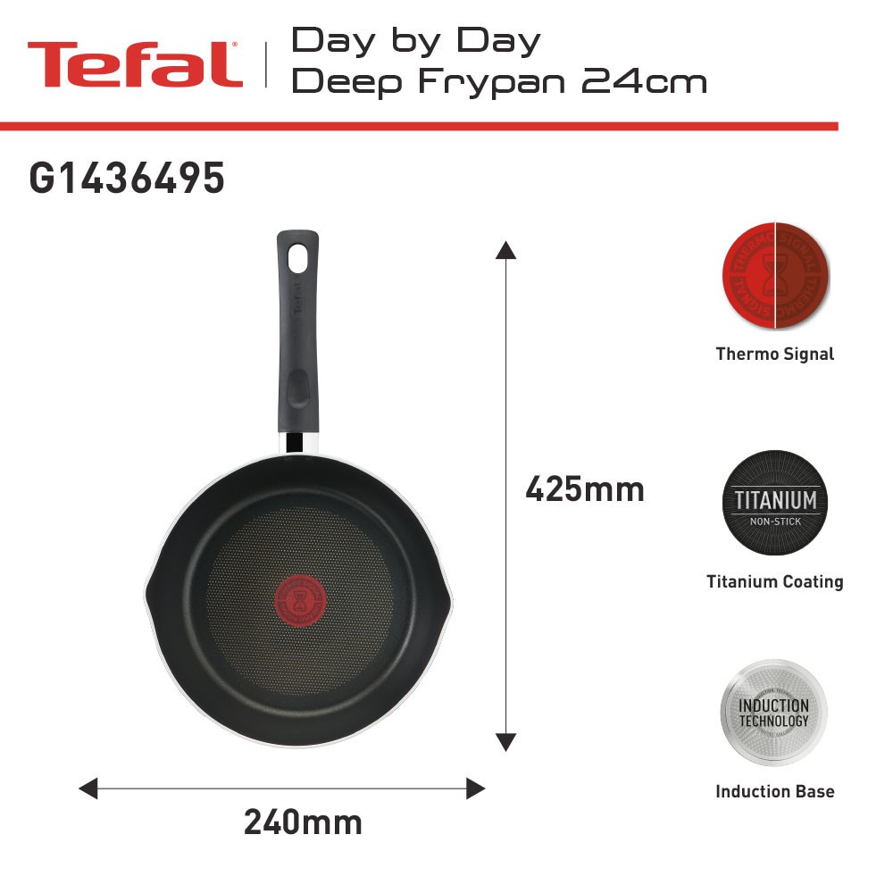 Tefal Day by Day Deep Frypan Series 24 / 28 CM - Wajan Induksi Anti Lengket Bisa di Semua Kompor / Pengrengan Garansi 1