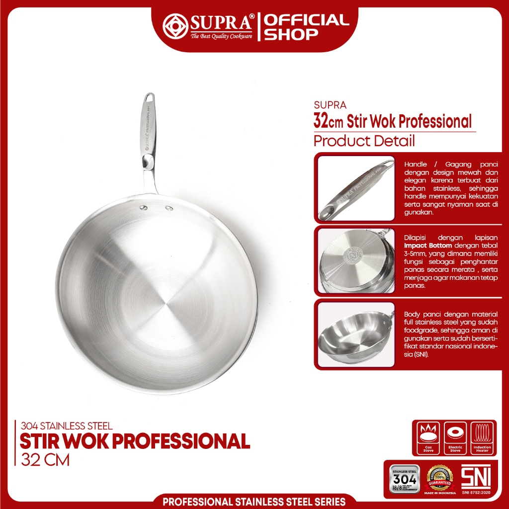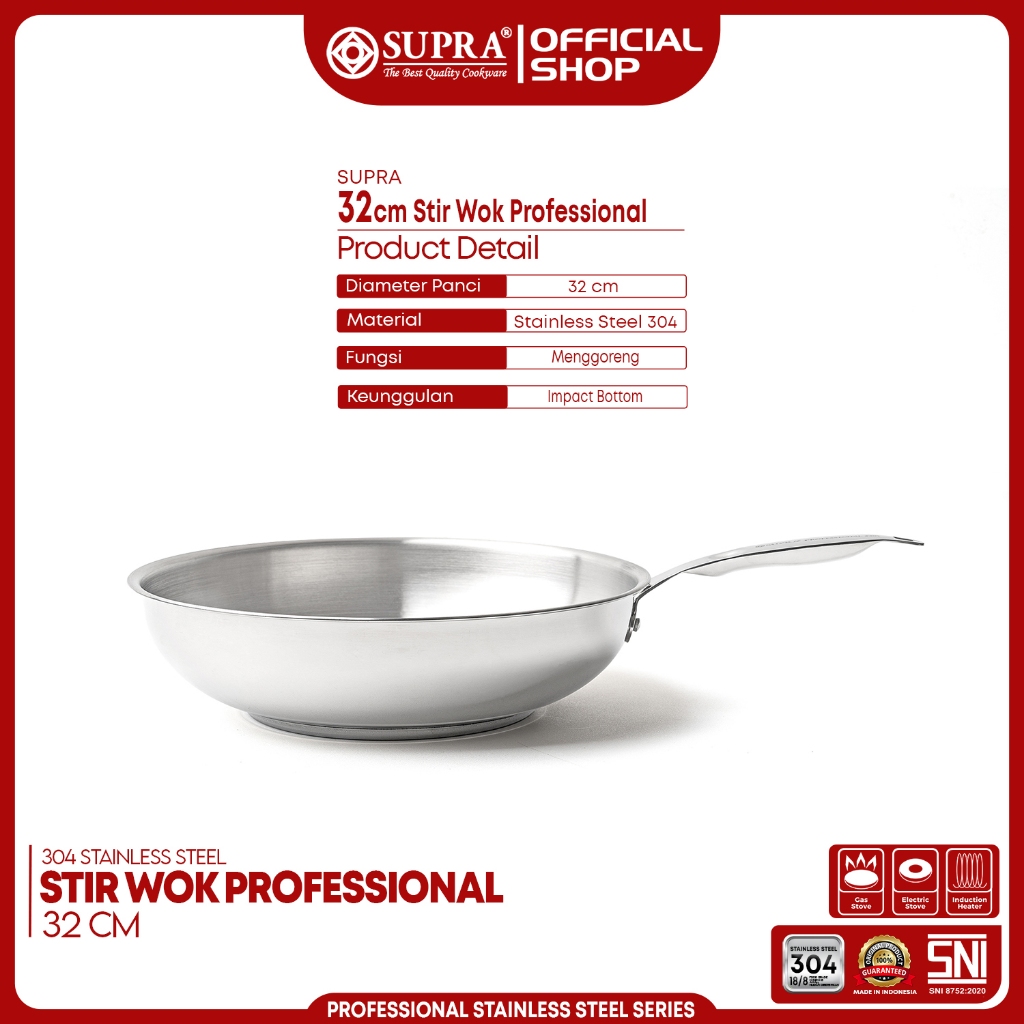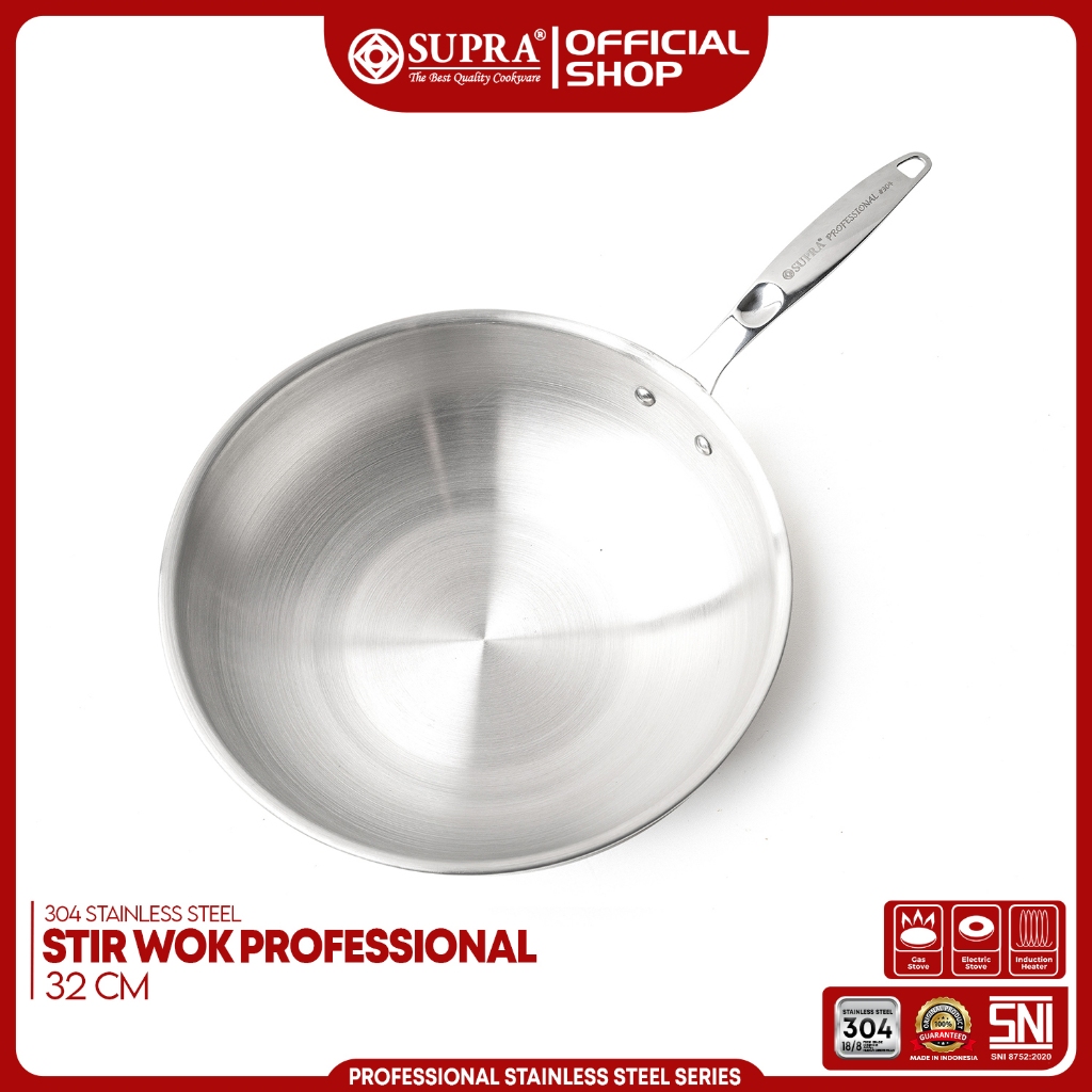 SUPRA Panci Wajan Pengrengan Stainless Steel SUS 304 Stir Wok 32 Cm Professional Series