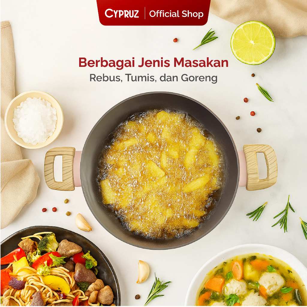 Cypruz Wajan Kuali Anti Lengket Wok Pan Non Stick Pink Ceramic Series Dengan Tutup